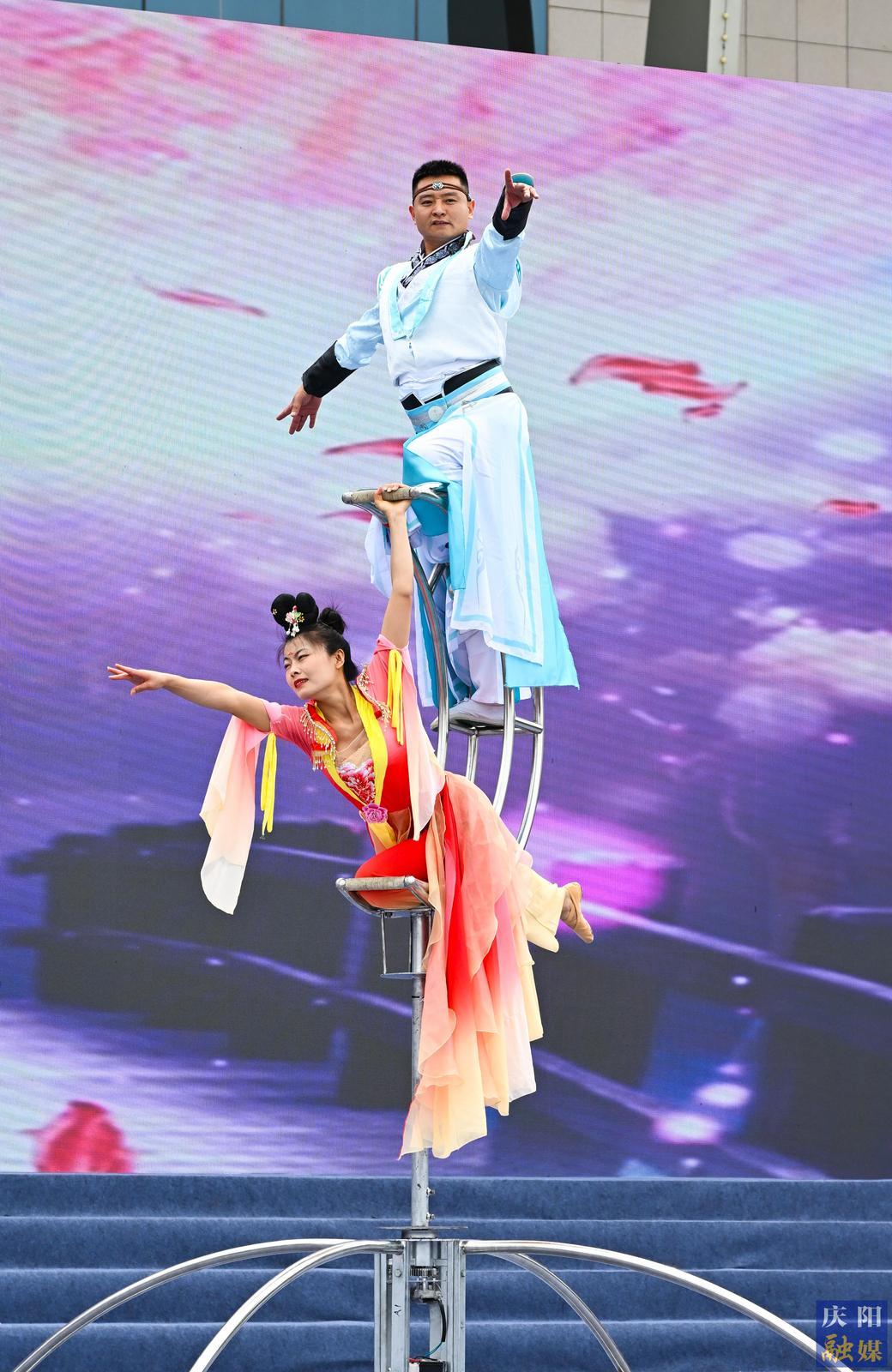 寧縣專場(chǎng)展演由中共寧縣委、寧縣人民政府主辦,演出在《盛世鼓舞》熱鬧歡快的鼓點(diǎn)中拉開大幕,隨后,音樂快板《贊寧州》、男聲獨(dú)唱《夢(mèng)回義渠》、現(xiàn)代說唱《我們的故事》、器樂合奏《慶陽三首民歌聯(lián)奏》、創(chuàng)新非遺走秀《錦繡山河》等節(jié)目輪番上場(chǎng),融合了寧縣深厚的歷史底蘊(yùn)、獨(dú)特的非遺文化和昂揚(yáng)的時(shí)代氣息,形式多樣、特色鮮明,博得了現(xiàn)場(chǎng)觀眾陣陣掌聲。