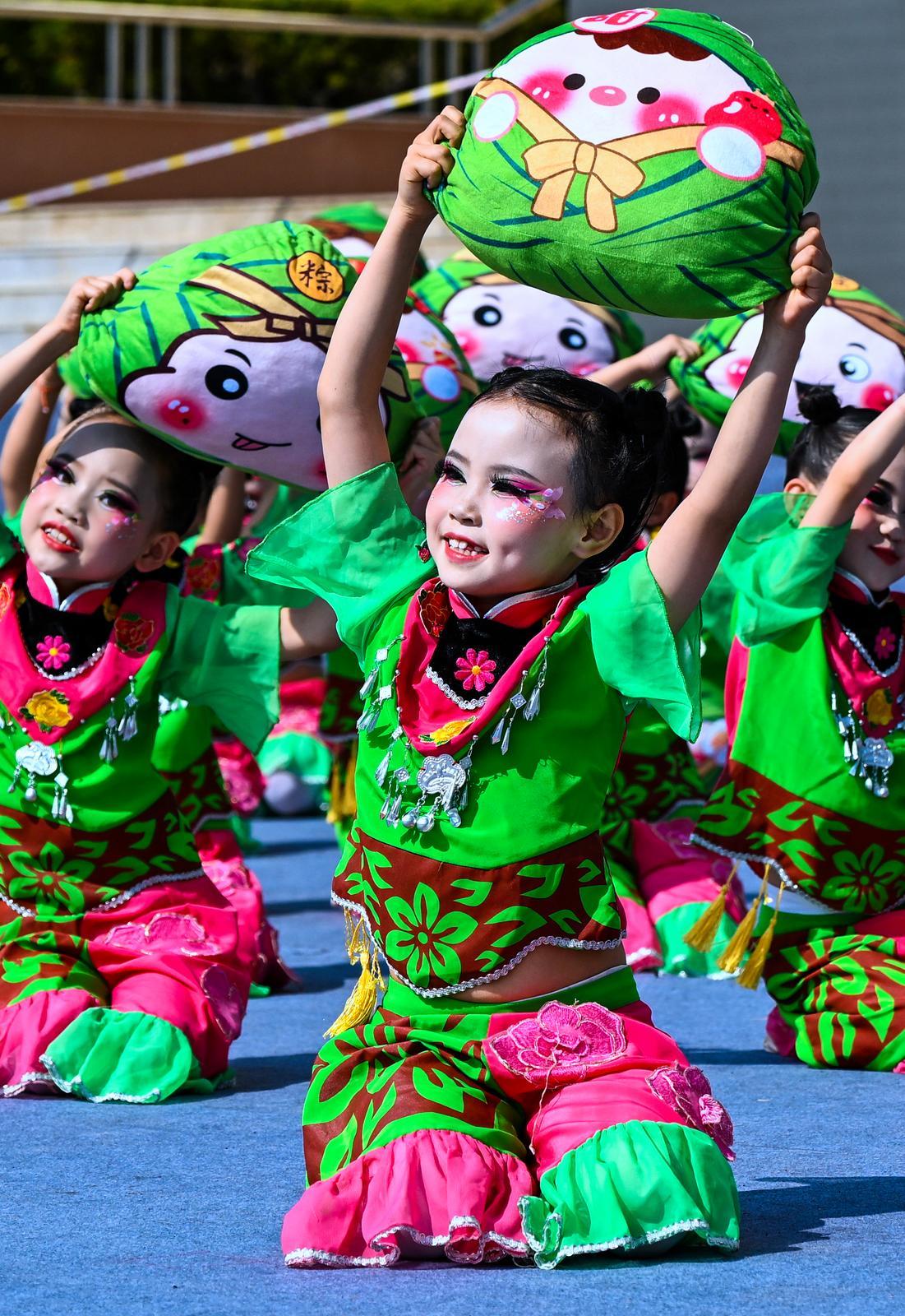 縣(區(qū))群眾文化展演中的舞蹈表演《香包娃娃過(guò)端午》。