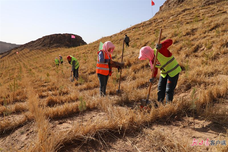 環(huán)縣甜水鎮(zhèn)樊溝泉林場(chǎng)組織群眾補(bǔ)植苗木。(圖片由環(huán)縣融媒體中心提供)