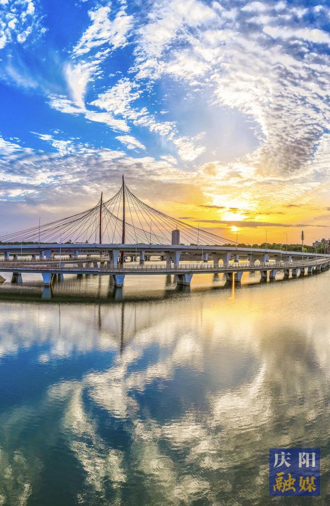藍天白云下,子午嶺林海郁郁蔥蔥,茂密層疊,鳥鳴與風(fēng)聲交織成曲,盡顯自然野趣;太白稻田,稻浪翻涌,勾勒出恬靜的田園畫卷;巴家咀水庫湖面如鏡,倒映著綠樹青山;彩虹橋的絢麗色彩與藍天白云交相輝映,成為連接城市與鄉(xiāng)村的浪漫紐帶;廣袤的董志大塬上,植被隨地形起伏,黃綠相間,宛如天然調(diào)色盤。