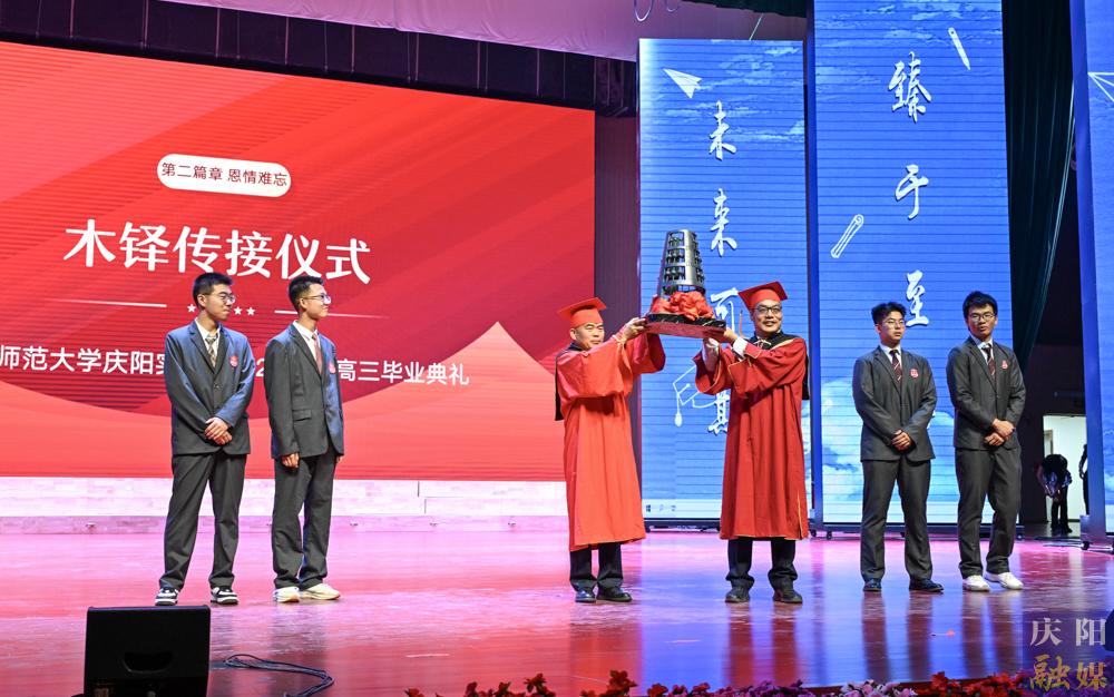典禮上,畢業(yè)生代表深情分享求學(xué)故事,真摯表達(dá)對師恩的銘記、對同窗的不舍;家長代表發(fā)言,字里行間滿是對學(xué)校的感謝與對學(xué)子的殷切期許;教師代表的深情寄語,更是飽含著對畢業(yè)生的美好祝福與諄諄教誨 。隨后的撥穗儀式、木鐸傳接、寶典接力環(huán)節(jié),傳承著學(xué)校的精神火種,也為畢業(yè)生們的高中生活畫上圓滿句號。
