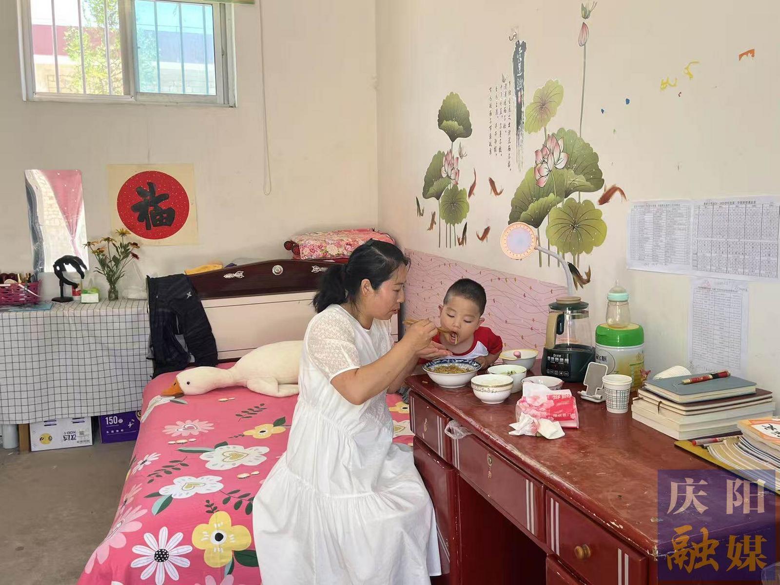 ▲課后,楊雪照顧孩子吃飯。