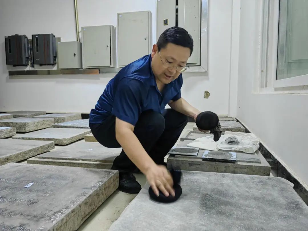 ▲張馳進(jìn)行石碑拓片。