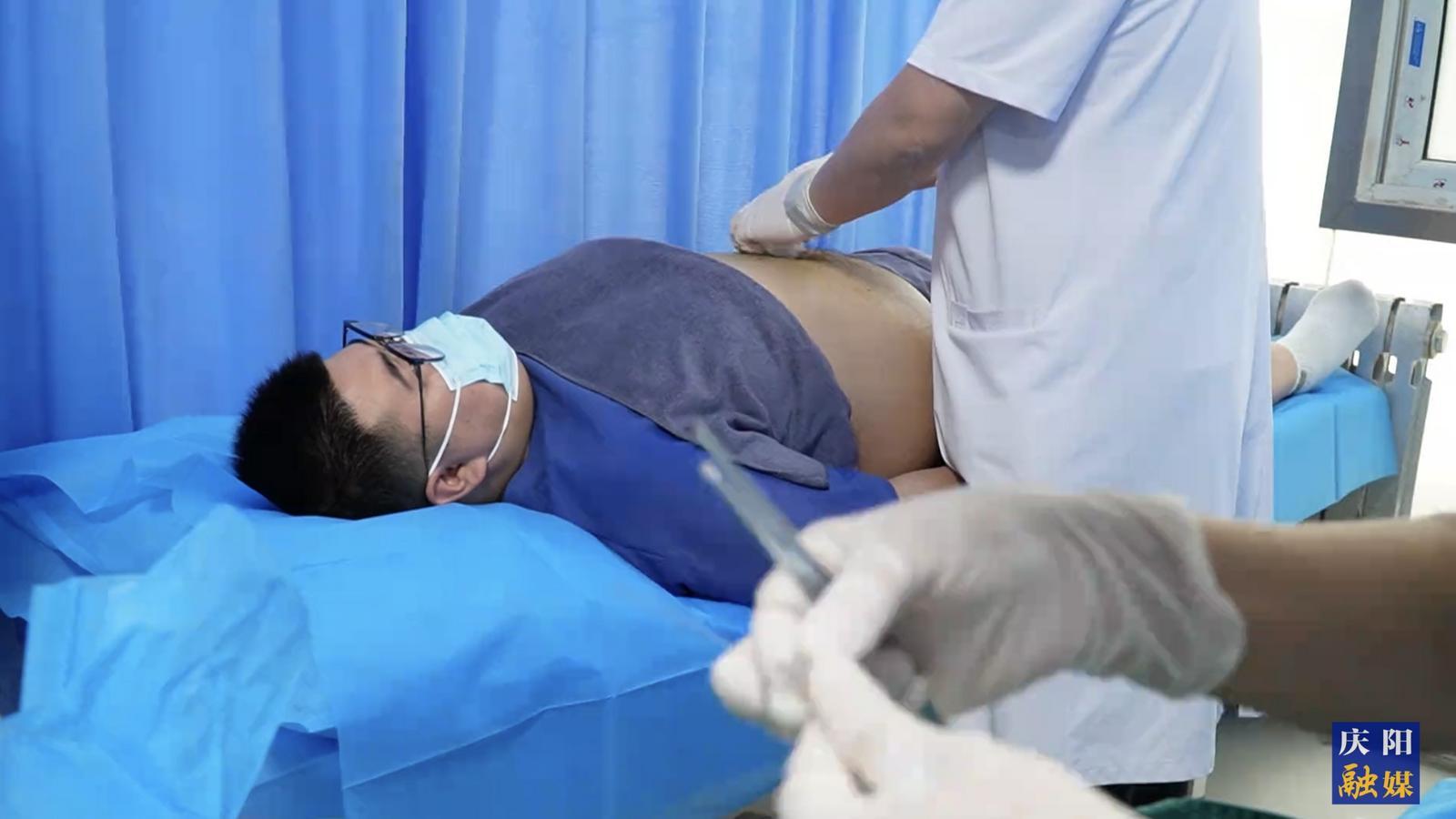 慶陽市中醫(yī)醫(yī)院醫(yī)生正在為患者進(jìn)行穴位埋線治療。