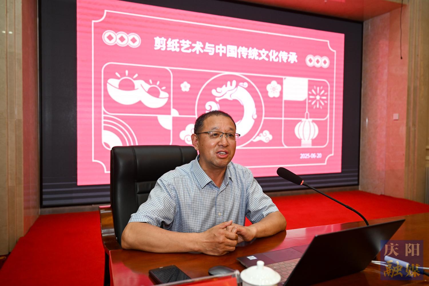 天水師范大學隴右文化研究中心辦公室主任、教授余糧才作題為《剪紙藝術與中國傳統(tǒng)文化傳承》的宣講。