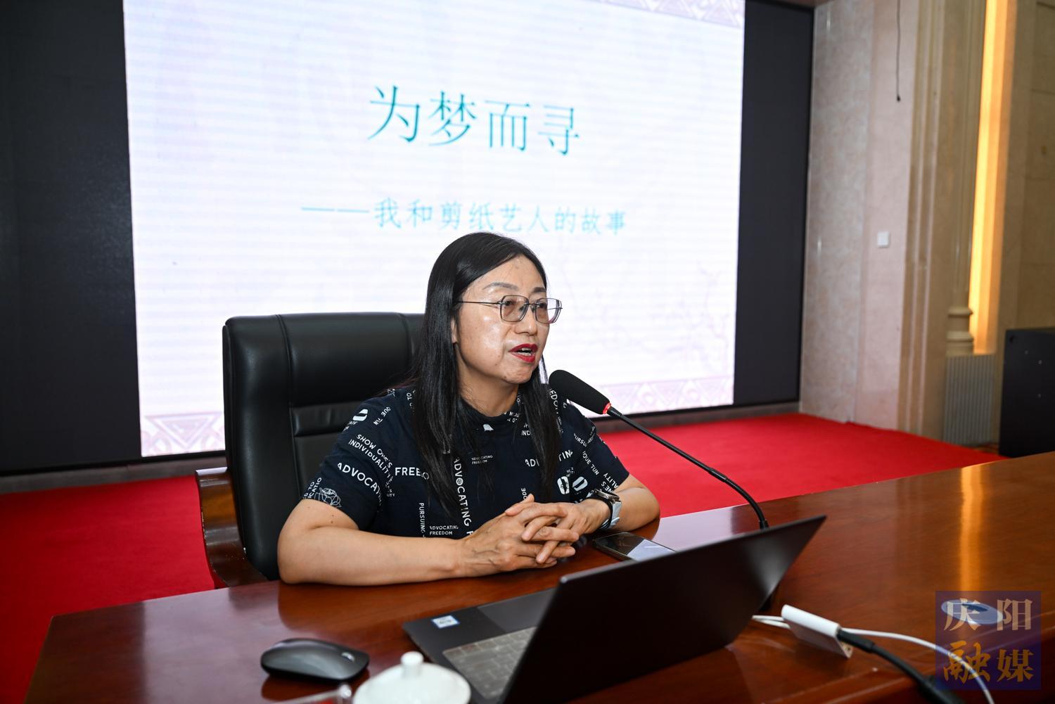 甘肅省民間文藝家協(xié)會副主席何霞作題為《剪紙藝術與中國傳統(tǒng)文化傳承》的宣講。