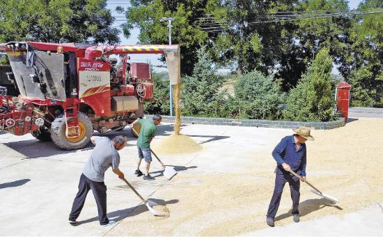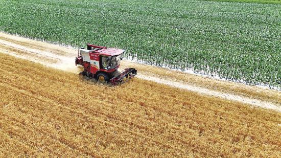 寧縣焦村鎮(zhèn)群眾搶抓晴好天氣收割小麥。