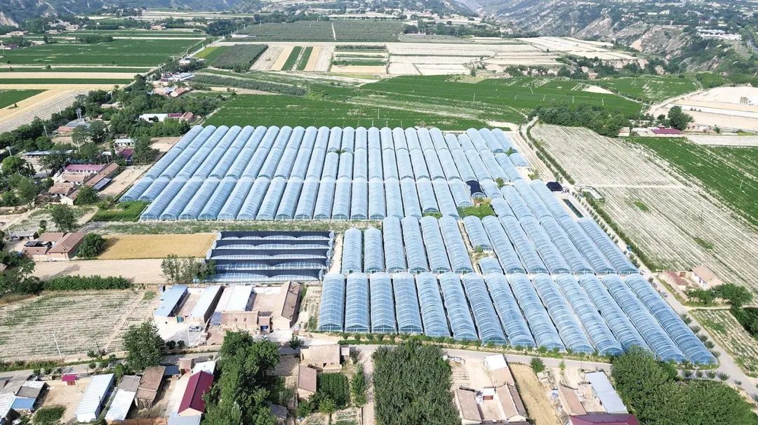 肖金鎮(zhèn)胡同村現(xiàn)代蔬菜種植基地俯瞰。 慶陽(yáng)融媒記者 盤(pán)小美 攝