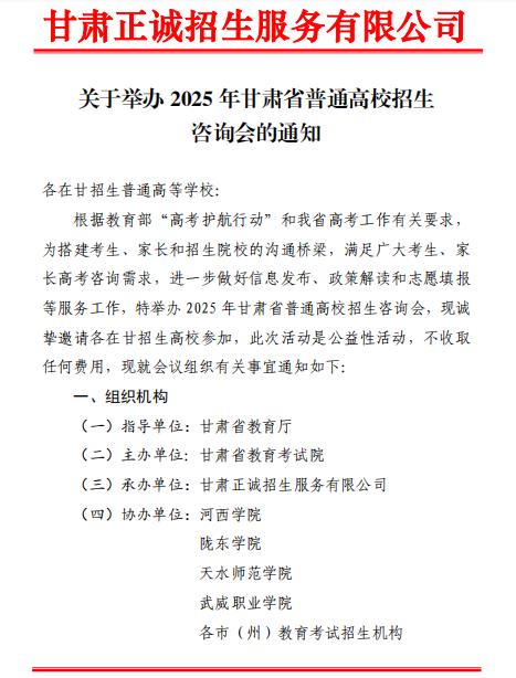 本次活動(dòng)由甘肅省教育廳指導(dǎo),甘肅省教育考試院主辦,甘肅正誠(chéng)招生服務(wù)有限公司承辦,旨在搭建考生、家長(zhǎng)與高校間的權(quán)威溝通平臺(tái),提供精準(zhǔn)政策解讀和志愿填報(bào)指導(dǎo)。