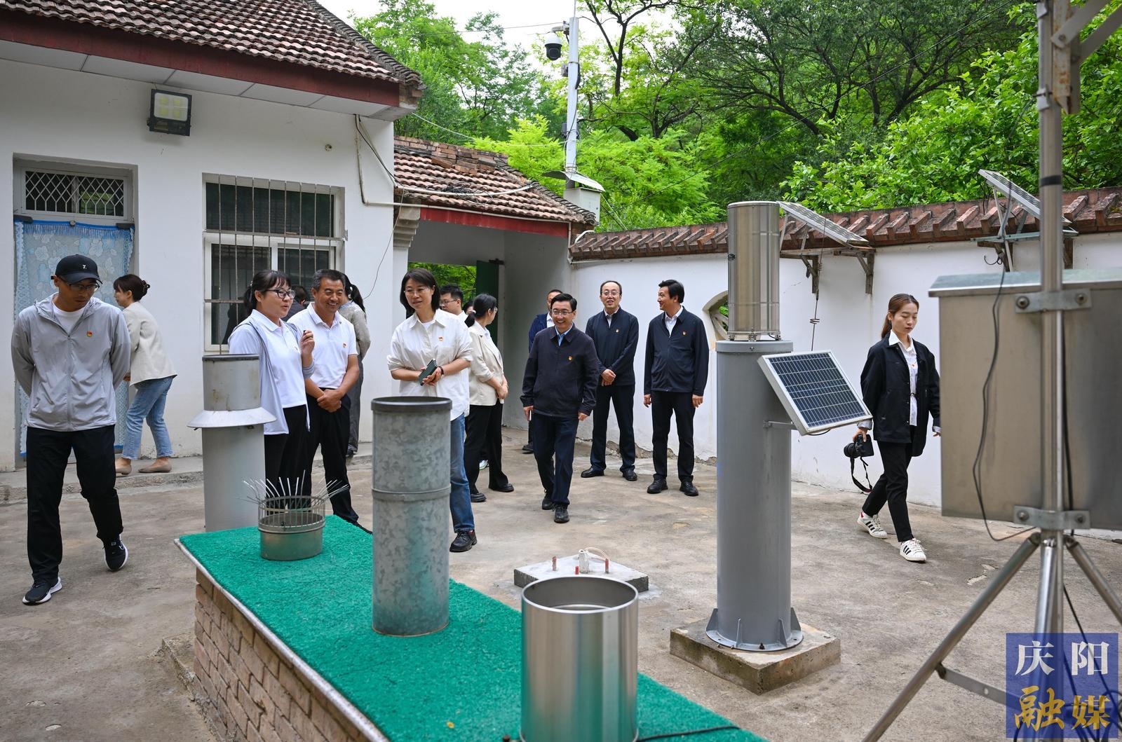 現(xiàn)場(chǎng)人員參觀楊家溝徑流泥沙觀測(cè)站。
