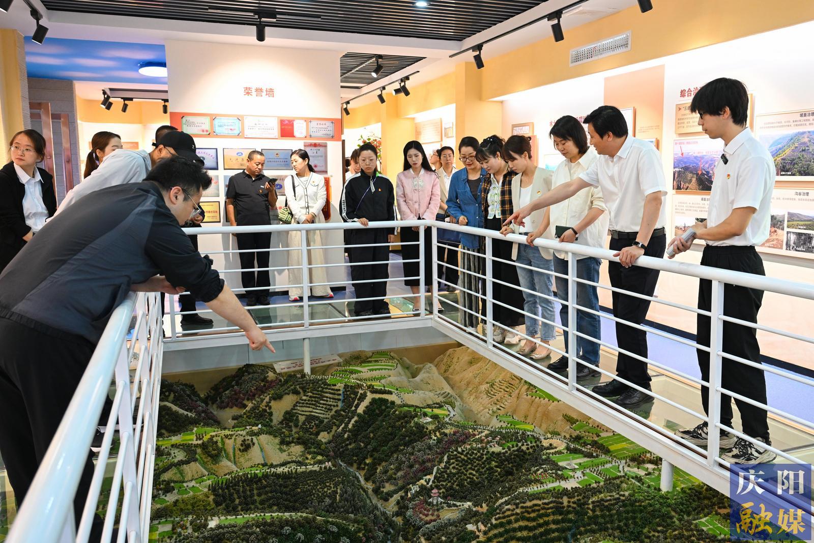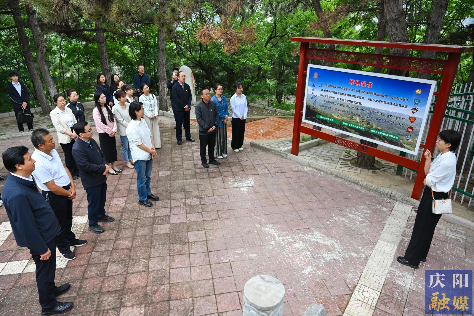 活動(dòng)中,全體人員實(shí)地參觀了黃河文化展館、被譽(yù)為“隴東第一壩”的十八畝臺(tái)淤地壩、楊家溝徑流泥沙觀測(cè)站及水土保持碳通量塔,并在觀景臺(tái)俯瞰流域綜合治理全貌。通過(guò)現(xiàn)場(chǎng)學(xué)習(xí),大家系統(tǒng)了解了南小河溝自1952年以來(lái)在水土流失治理、生態(tài)修復(fù)方面取得的顯著成就及其寶貴經(jīng)驗(yàn),以及近年來(lái)作為“黃土高原生態(tài)名片”在碳匯交易領(lǐng)域的創(chuàng)新實(shí)踐。
