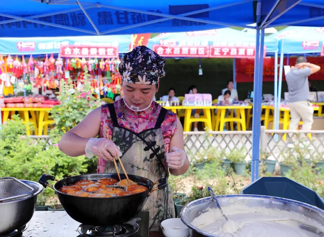 在生態(tài)農(nóng)莊負(fù)責(zé)人楊清艷的精心籌備下,來(lái)自環(huán)縣各鄉(xiāng)鎮(zhèn)的美食展銷(xiāo)區(qū)紛紛亮出了自己的看家本領(lǐng),煎炒烹炸、蒸煮燙涮忙得不亦樂(lè)乎,細(xì)膩的燕面柔柔、爽滑的涼皮、鮮香的包子,還有那別具一格的糖角角,甜蜜誘人。各式美食香氣襲人,引得游客紛紛駐足品嘗,農(nóng)村大集儼然成了美食天堂。游客趙萬(wàn)海置身于人擠人的大集中:“這種能看到制作過(guò)程、能聽(tīng)到叫賣(mài)聲、能聞到食物香氣的沉浸式趕集體驗(yàn),真是太棒了,不僅能品嘗美食的同時(shí),還能感受到濃濃的鄉(xiāng)村煙火氣?!?/p>