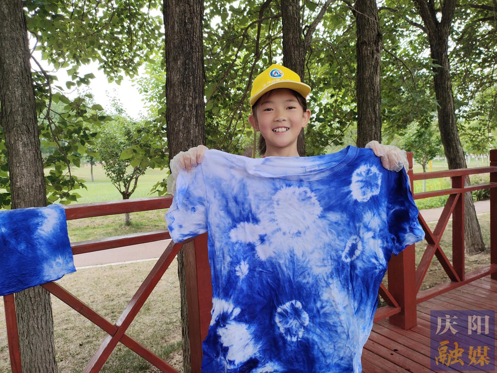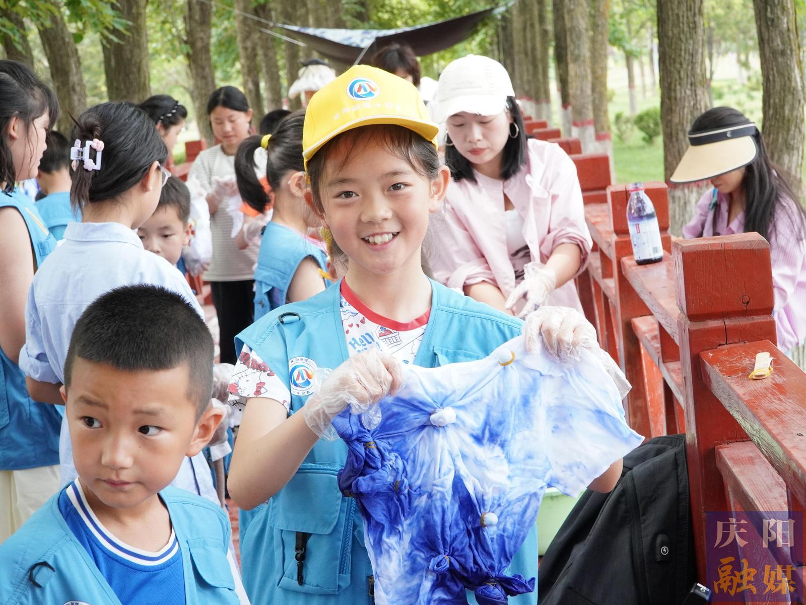 陽光透過樹葉的縫隙灑在大地上,形成一片片金色的光斑,在這樣一個(gè)陽光明媚的早晨,我滿懷期待的跟隨慶陽融媒小記者團(tuán)參加了一場意義非凡的扎染活動(dòng)。