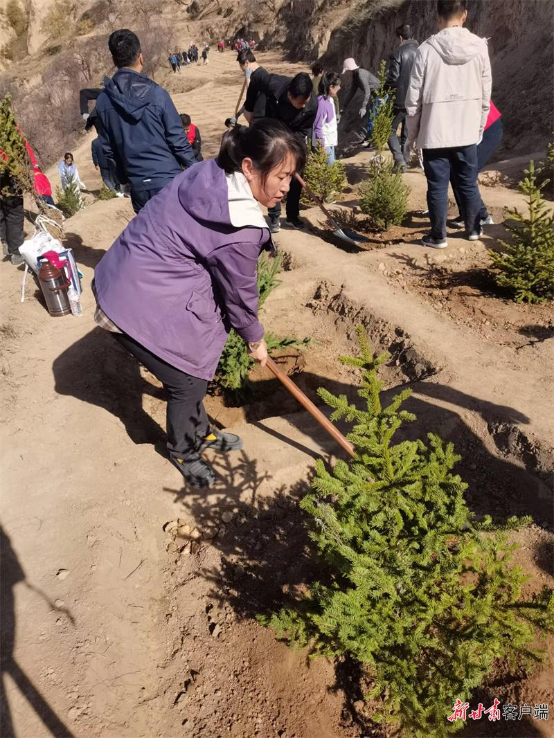 馬銀萍與村民一起開展植綠活動(dòng)。
