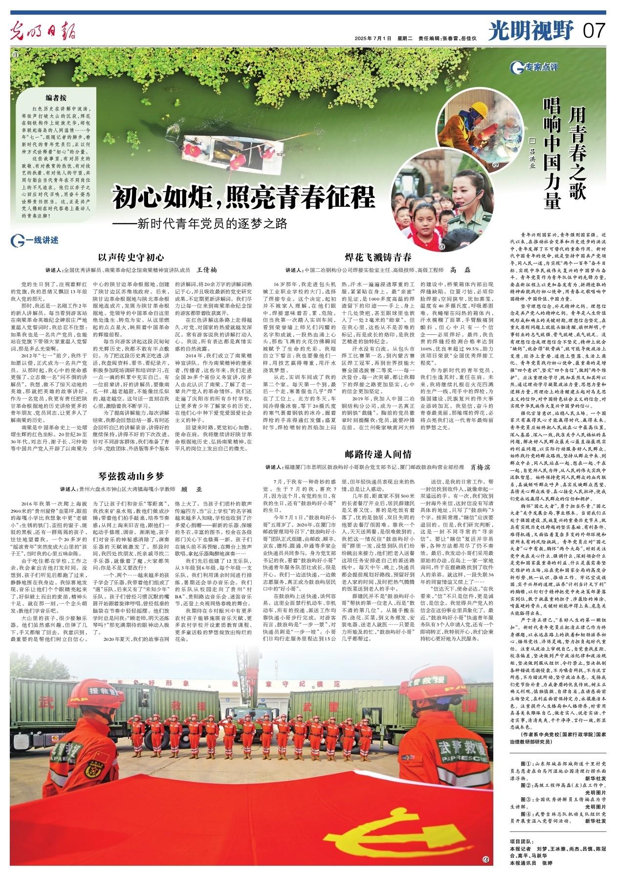 紅色歷史在講解中流淌,琴弦聲打破大山的沉寂,焊花在鋼鐵構(gòu)件上綻放光華,郵包串聯(lián)起海島的人間溫情……今年“七一”,跟隨記者的腳步,看新時代的青年黨員們,正以何種方式詮釋著“初心”的分量。