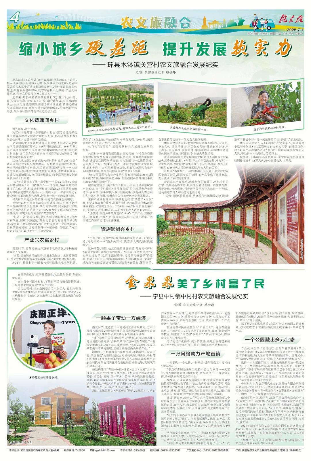 近年來,環(huán)縣木缽鎮(zhèn)關(guān)營村緊扣“吃、住、行、游、購、娛”全要素布局,探索“農(nóng)+文+旅”融合路徑:以農(nóng)為根深植沃土,以文為魂浸潤田園,以游為翼助推發(fā)展,精準(zhǔn)把握城鄉(xiāng)要素流動規(guī)律,重構(gòu)鄉(xiāng)村空間價值體系,積極發(fā)展近郊經(jīng)濟,催生鄉(xiāng)村旅游等新興業(yè)態(tài)持續(xù)升溫。