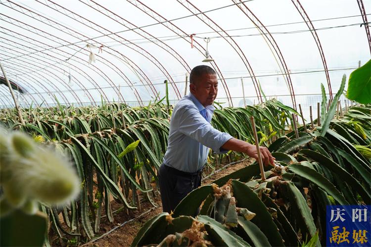 走進(jìn)體驗園內(nèi)的火龍果種植大棚里,負(fù)責(zé)人裴耀金正忙著給火龍果剪枝、拉枝。6年前,他從廣西引進(jìn)金都、燕窩等七個火龍果品種,在慶陽首次嘗試“南果北種”。經(jīng)過不斷摸索,如今,他種植的1325株火龍果迎來盛果期,年收入約15萬元。