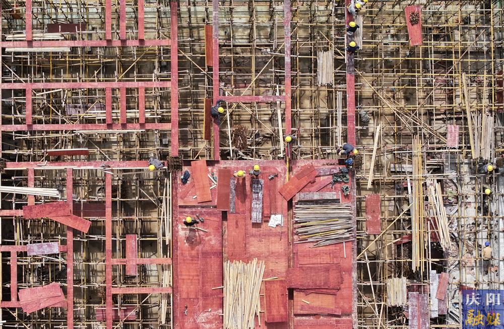 俯瞰慶陽(yáng)寰泰年產(chǎn)2萬(wàn)立方米釩電解液及3000噸高純?cè)仙a(chǎn)線項(xiàng)目建設(shè)現(xiàn)場(chǎng)。