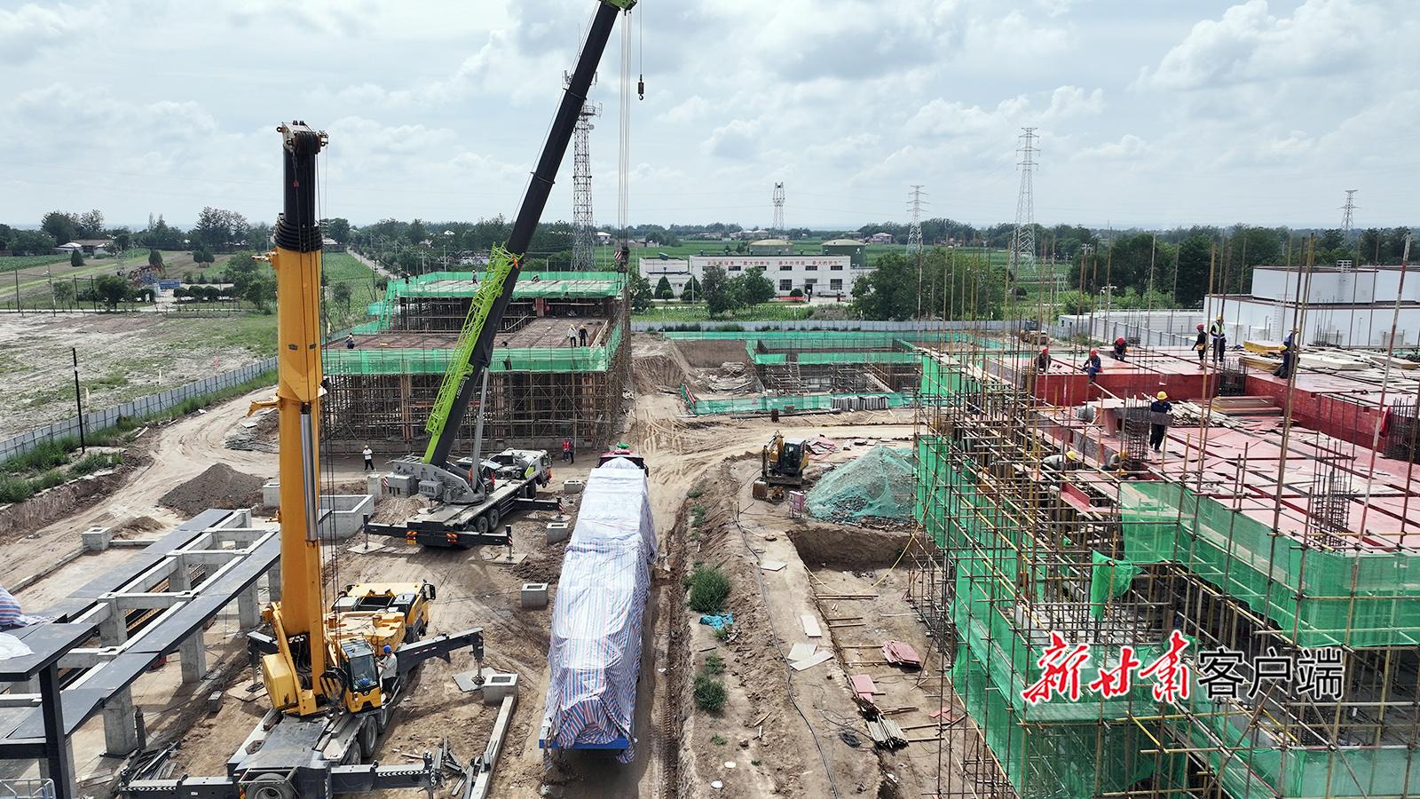 7月1日,慶陽寰泰年產(chǎn)2萬立方米釩電解液及3000噸高純?cè)仙a(chǎn)線項(xiàng)目建設(shè)現(xiàn)場,工人正在加緊施工。