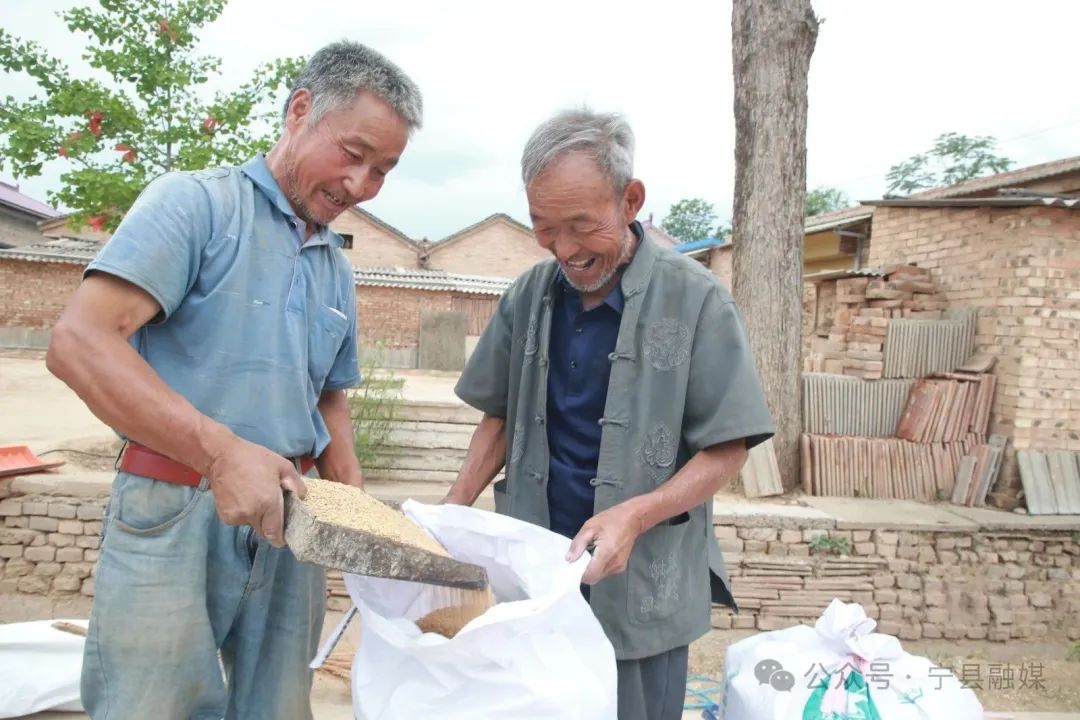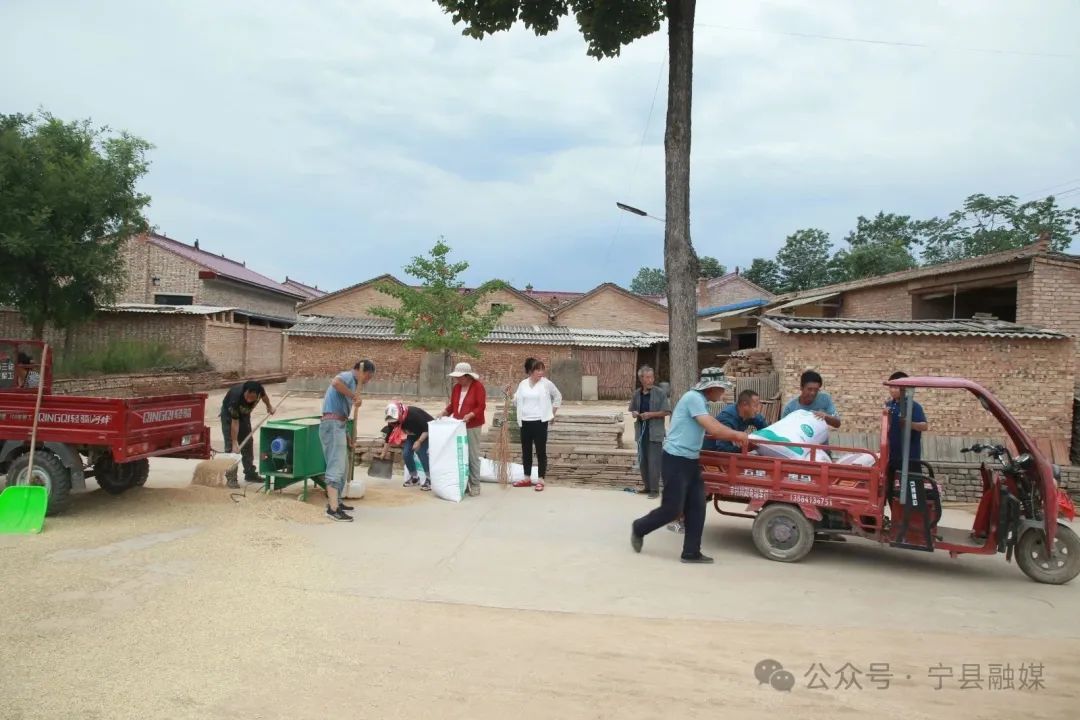 盛夏時(shí)節(jié)的幾場透雨之后,甘肅省寧縣湘樂鎮(zhèn)宇村塬的田野上玉米、黃豆、馬鈴薯等農(nóng)作物競相生長;果園里的套袋蘋果積蓄著力量。農(nóng)家院落里,農(nóng)戶們正晾曬著從田地里收割回來的小麥,或拉著木耙來回翻動(dòng),或光著腳板撥動(dòng)著。