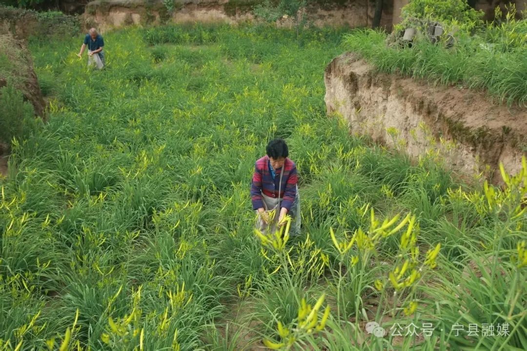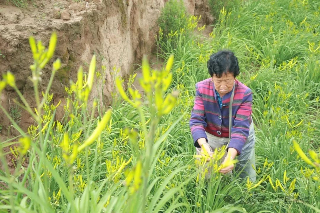 圖為寧縣南義鄉(xiāng)北莊村農(nóng)民海書銀家里采摘黃花菜