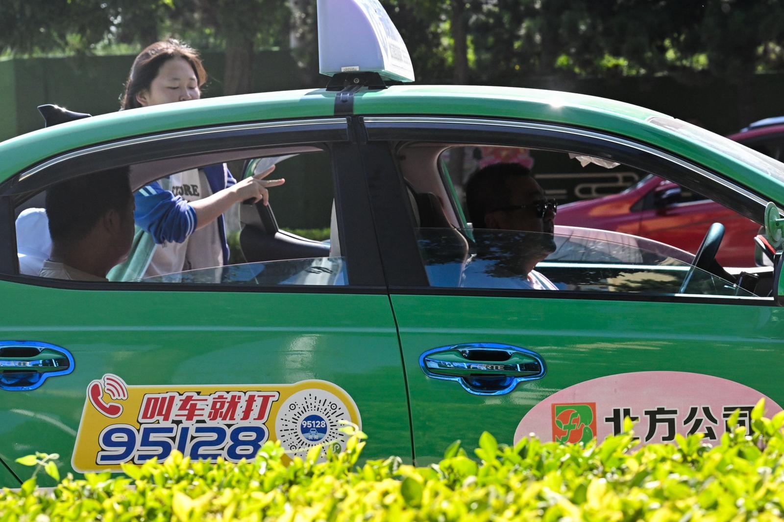 炎炎夏日,出租車司機(jī)接送乘客。