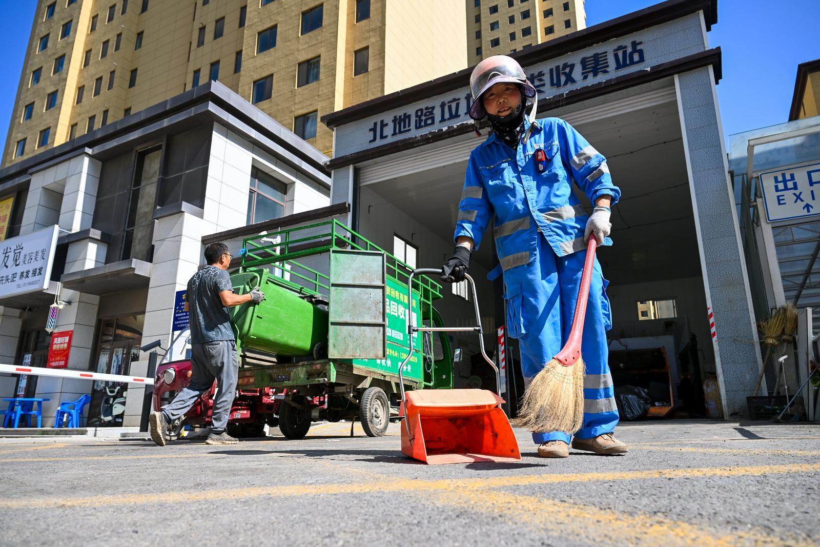 環(huán)衛(wèi)工人辛勤勞動(dòng)。