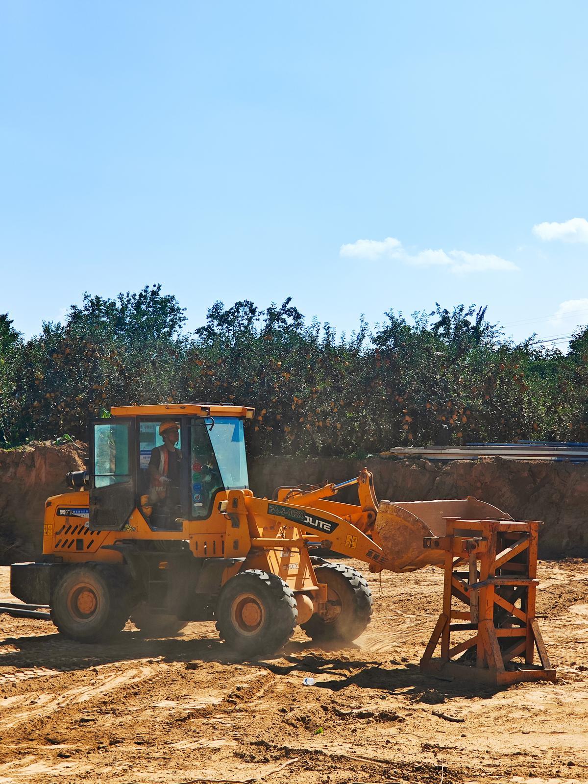 G244線慶陽過境段董志鎮(zhèn)施工現(xiàn)場(chǎng),工人在烈日下?lián)屭s項(xiàng)目進(jìn)度。