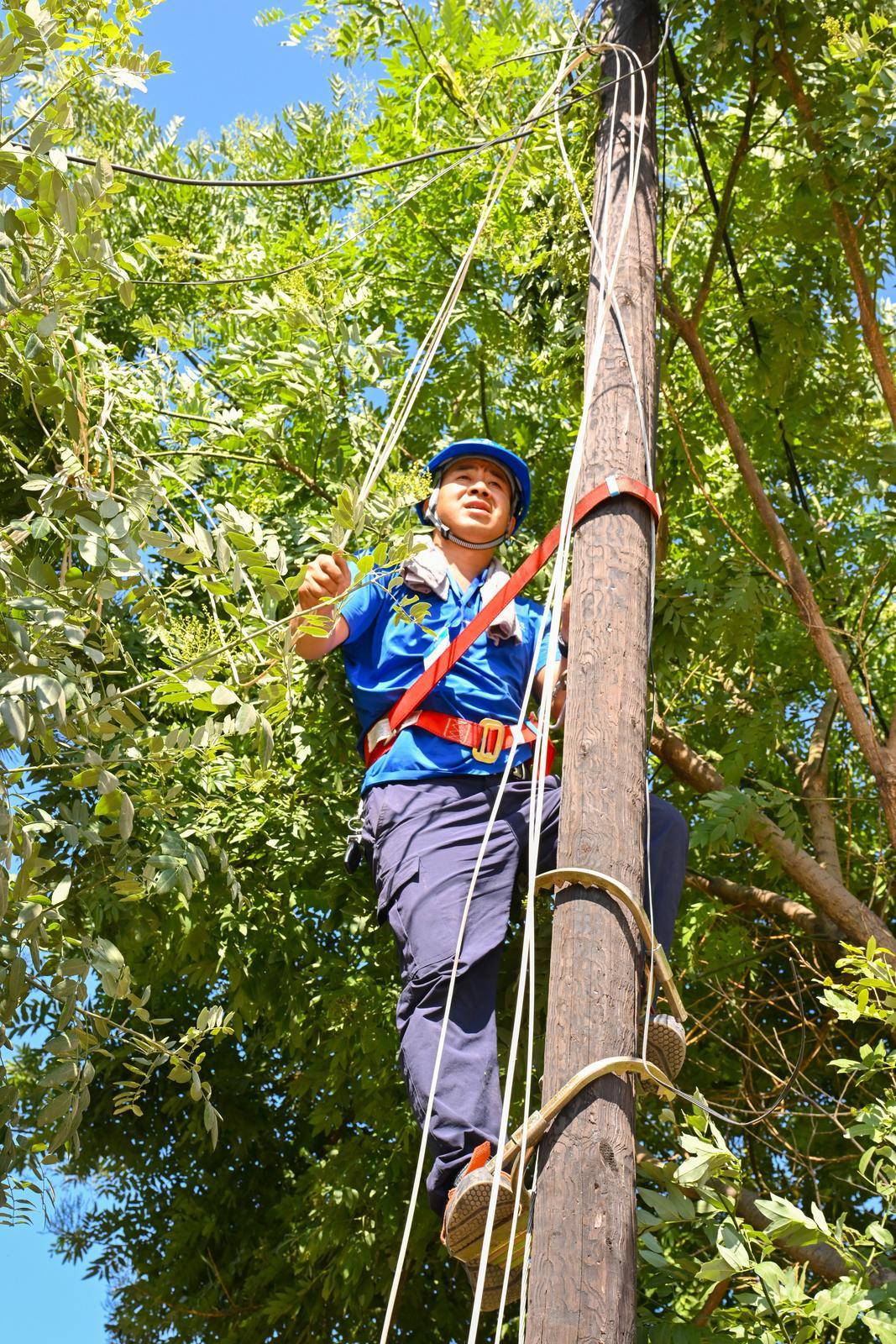 中國電信慶陽分公司工作人員在烈日下?lián)屝蘧€路故障。