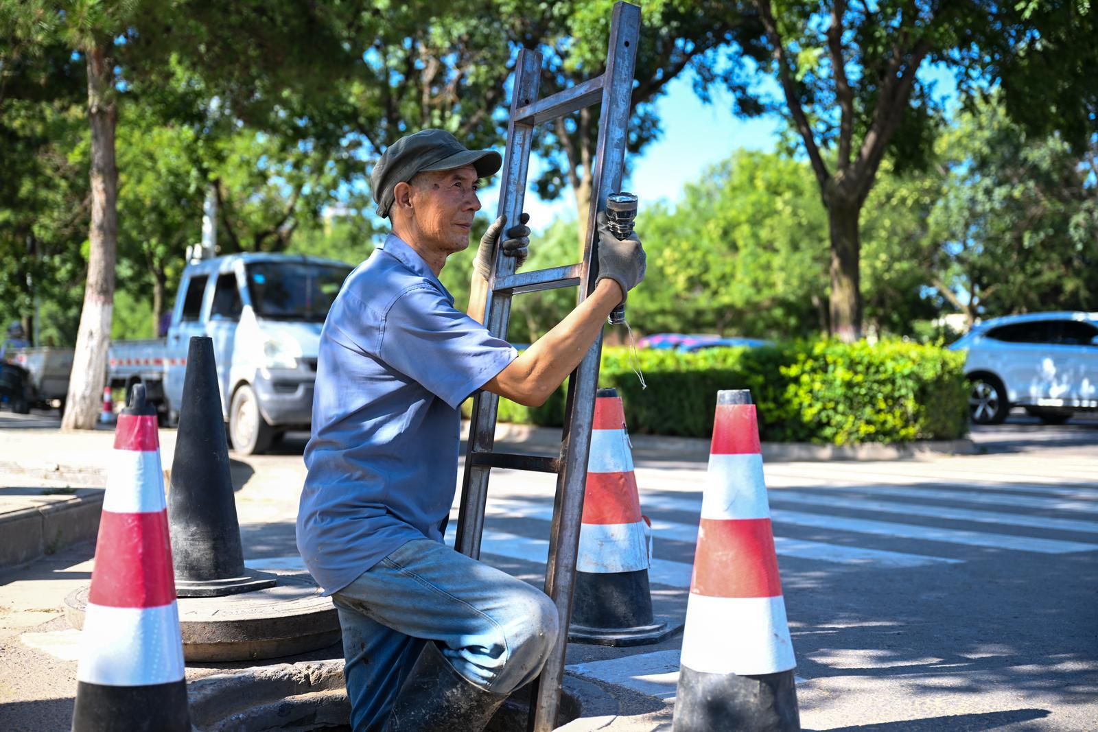 工人正在檢修下水道。