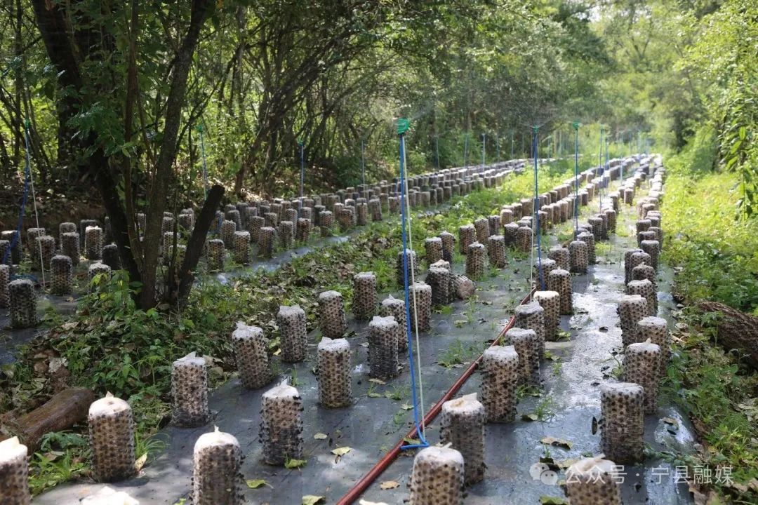林下黑木耳菌棒排列整齊