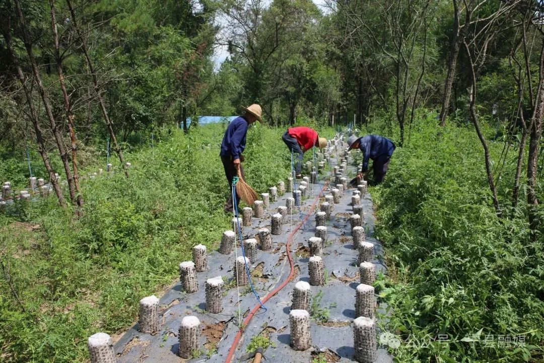 村民正在整理菌棒