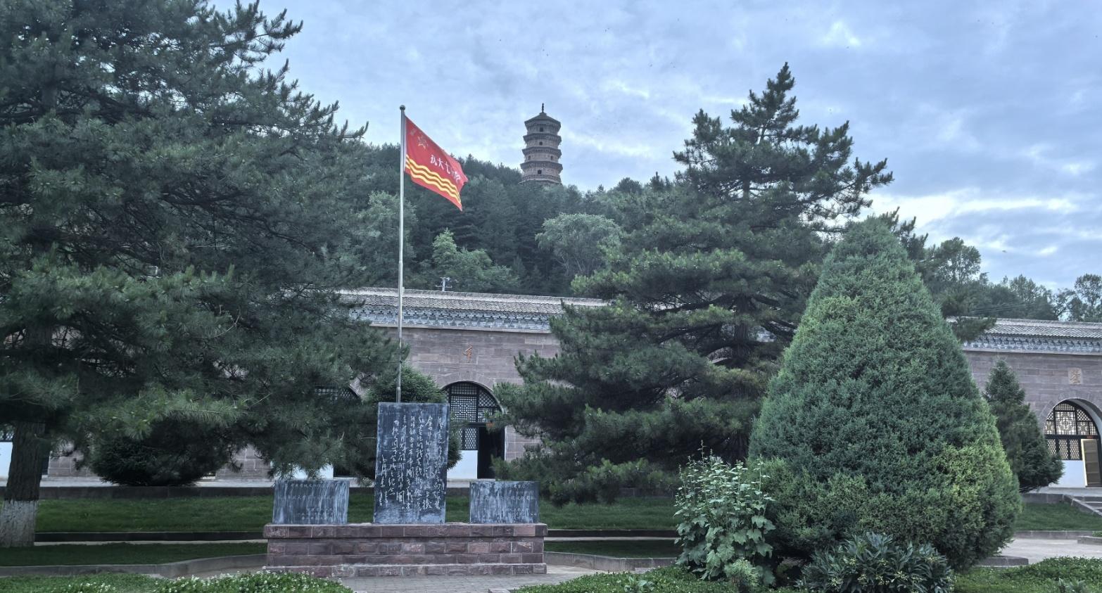 院落中,氣氛肅穆莊嚴(yán)。在懸掛著抗大七分校校旗的旗桿下駐足,仿佛看見(jiàn)了80余年前熊熊燃燒著的革命烈火,聽(tīng)見(jiàn)了隨時(shí)會(huì)吹響的嘹亮軍號(hào)。