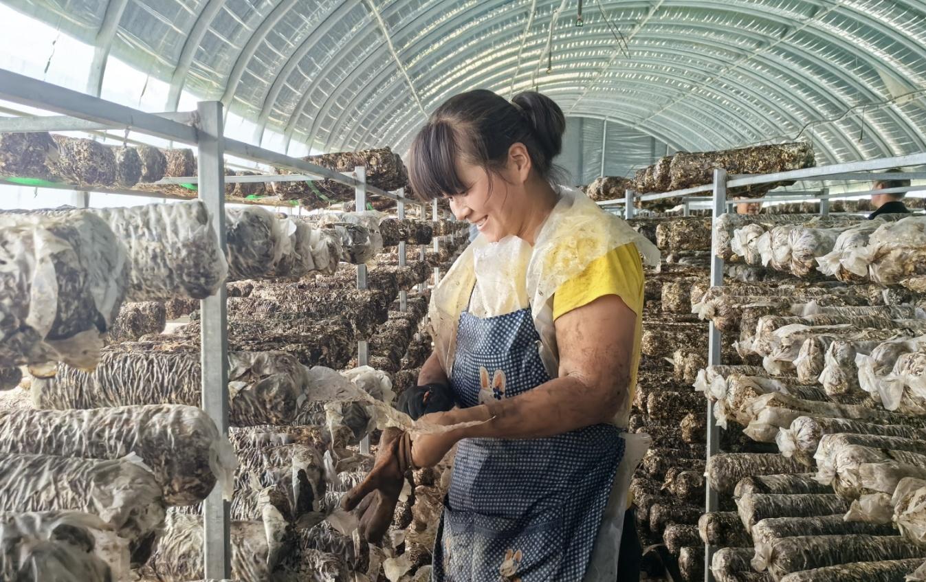 在鄰近的山莊鄉(xiāng)的另一個(gè)食用菌基地,正在大棚里工作的村民成霞告訴記者,她已經(jīng)在這個(gè)食用菌基地干了兩三年。每天,騎電動(dòng)車10多分鐘就可以到基地上班。