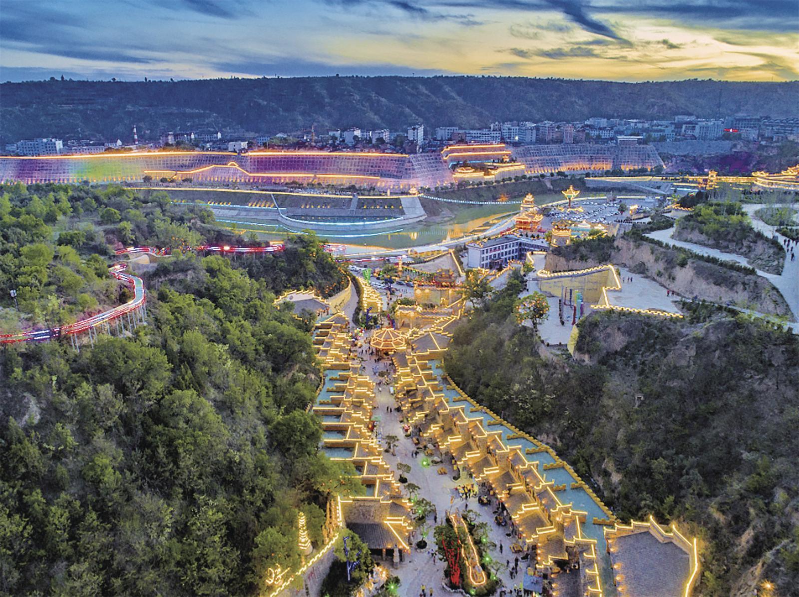 藥王洞養(yǎng)生小鎮(zhèn)夜景。