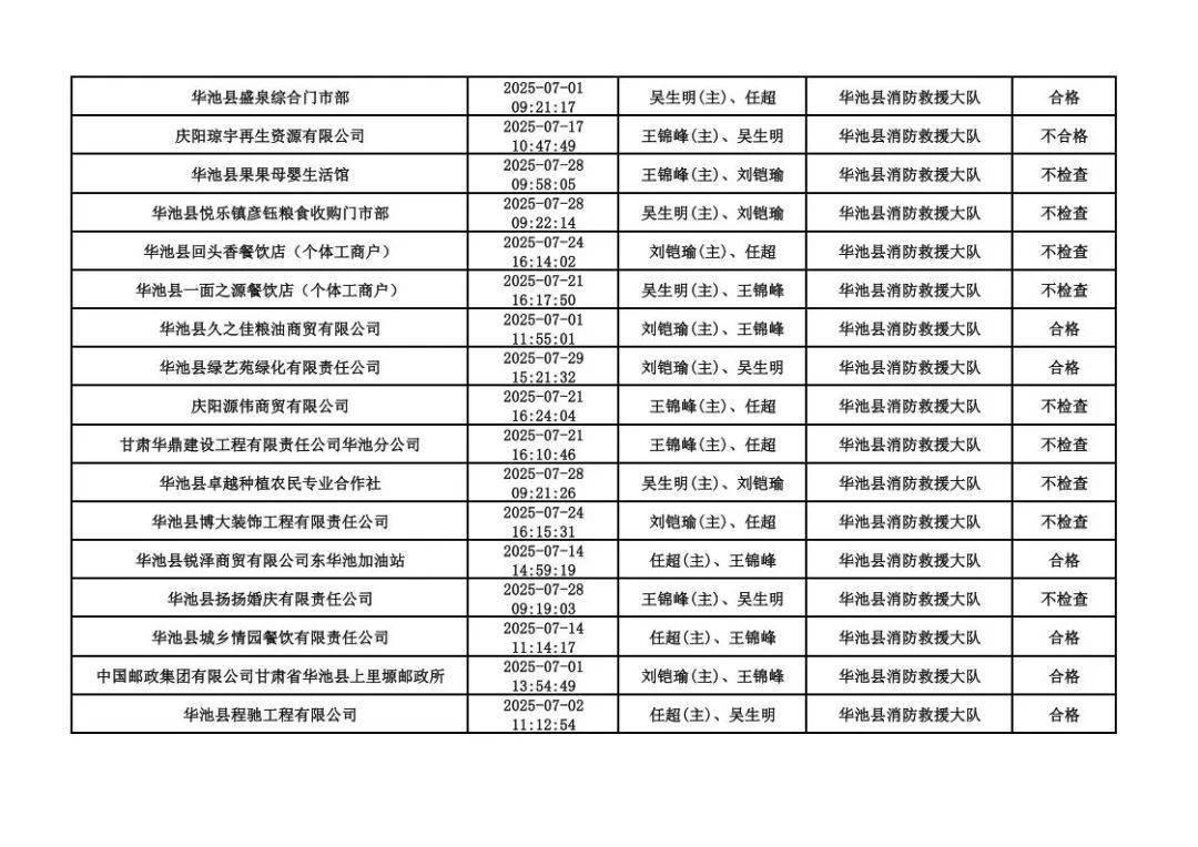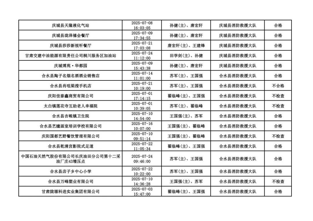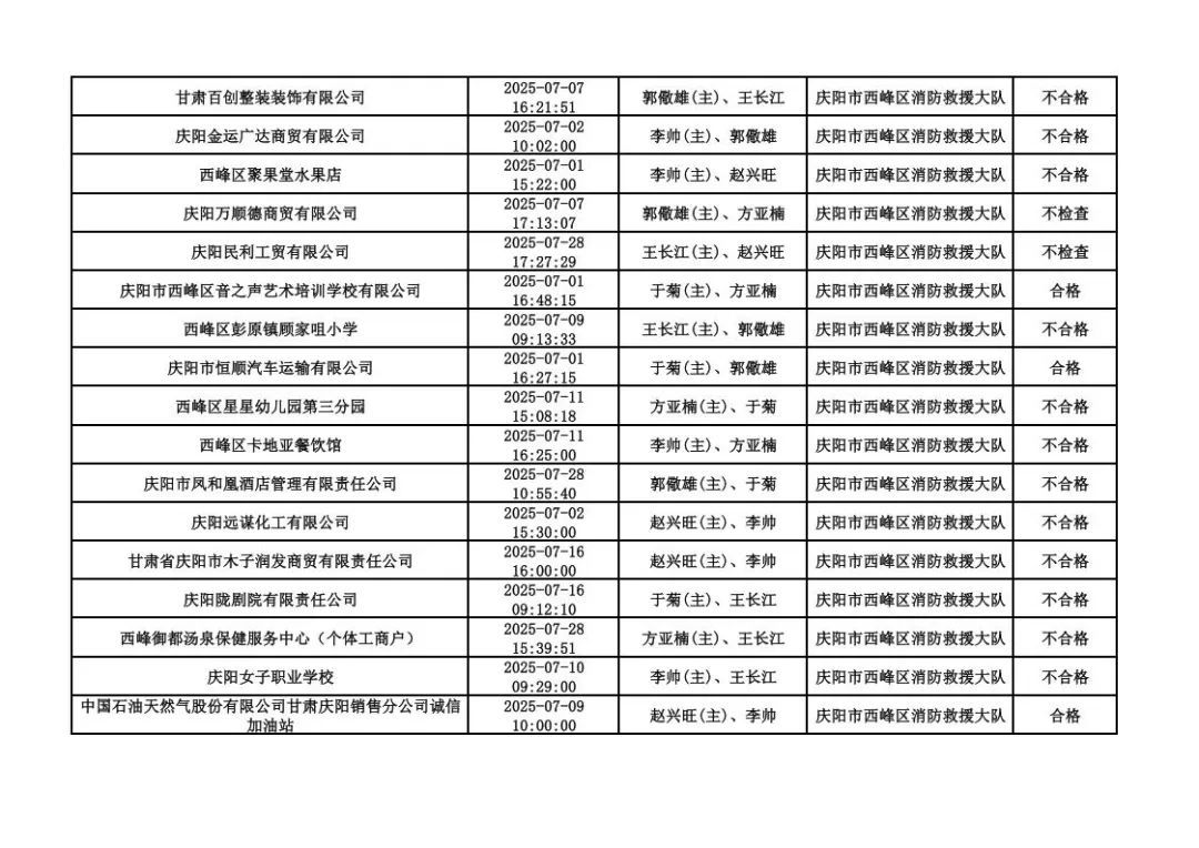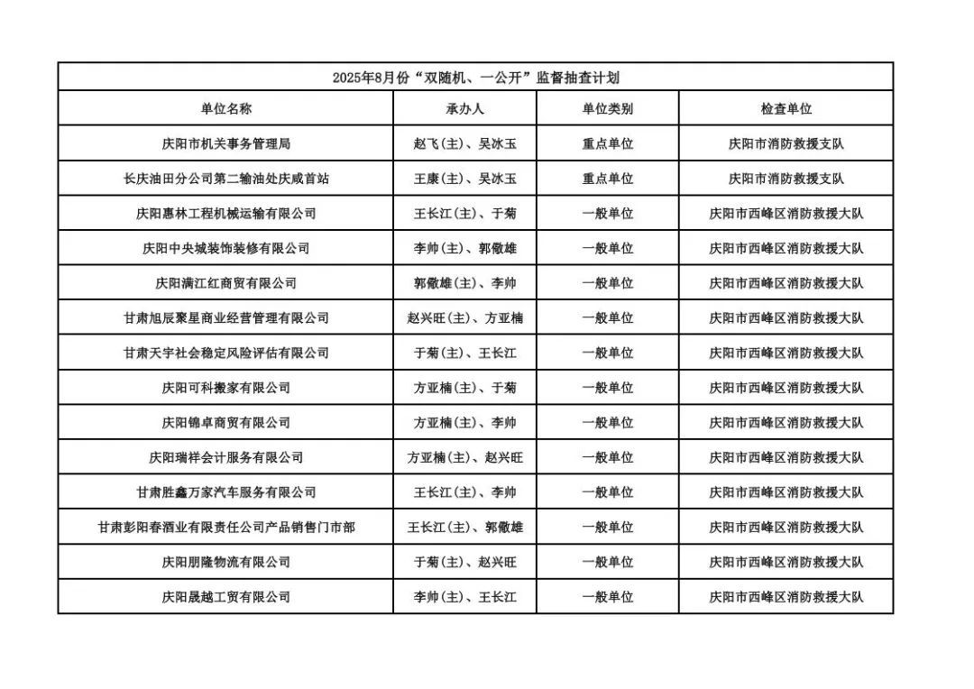 為貫徹落實《消防救援局關(guān)于全面推行“雙隨機(jī)、一公開”消防監(jiān)管工作的通知》(應(yīng)急消〔2019〕241號),認(rèn)真組織實施“雙隨機(jī)、一公開”消防監(jiān)管工作,現(xiàn)將2025年7月份“雙隨機(jī)、一公開”消防監(jiān)督檢查結(jié)果及2025年8月份監(jiān)督抽查計劃公示如下: