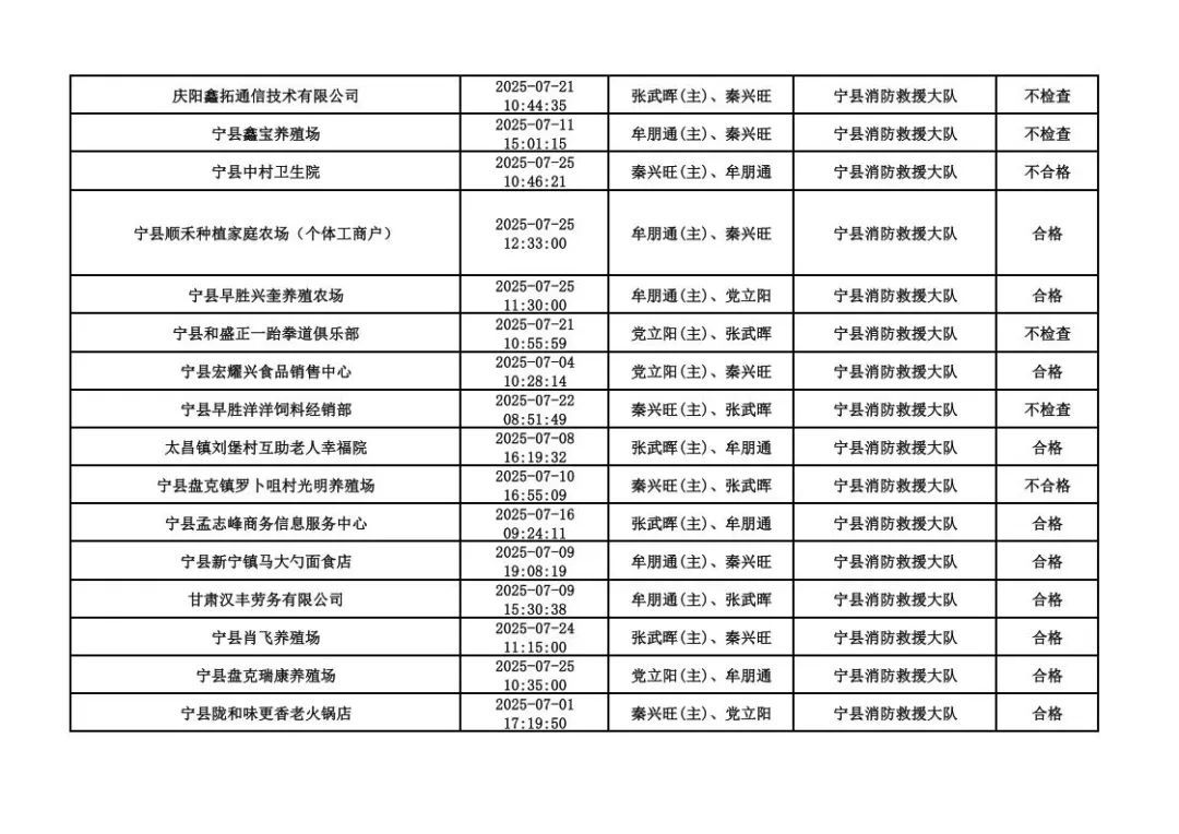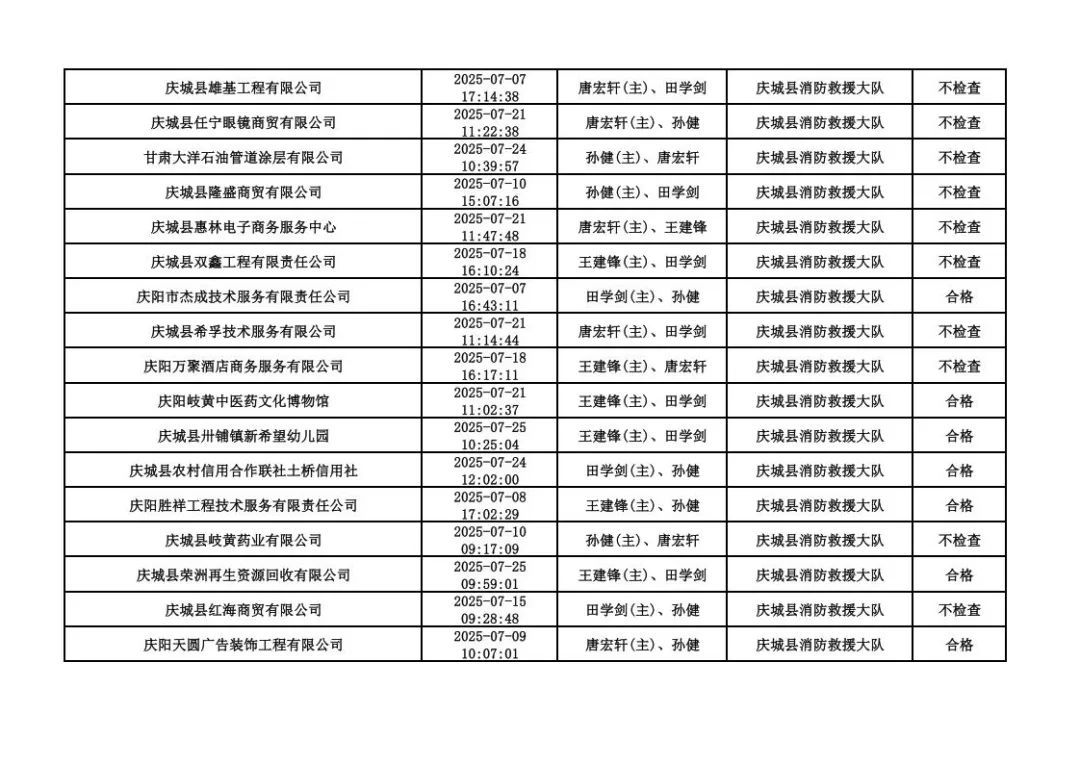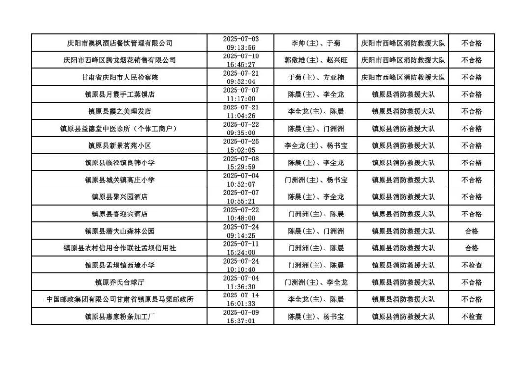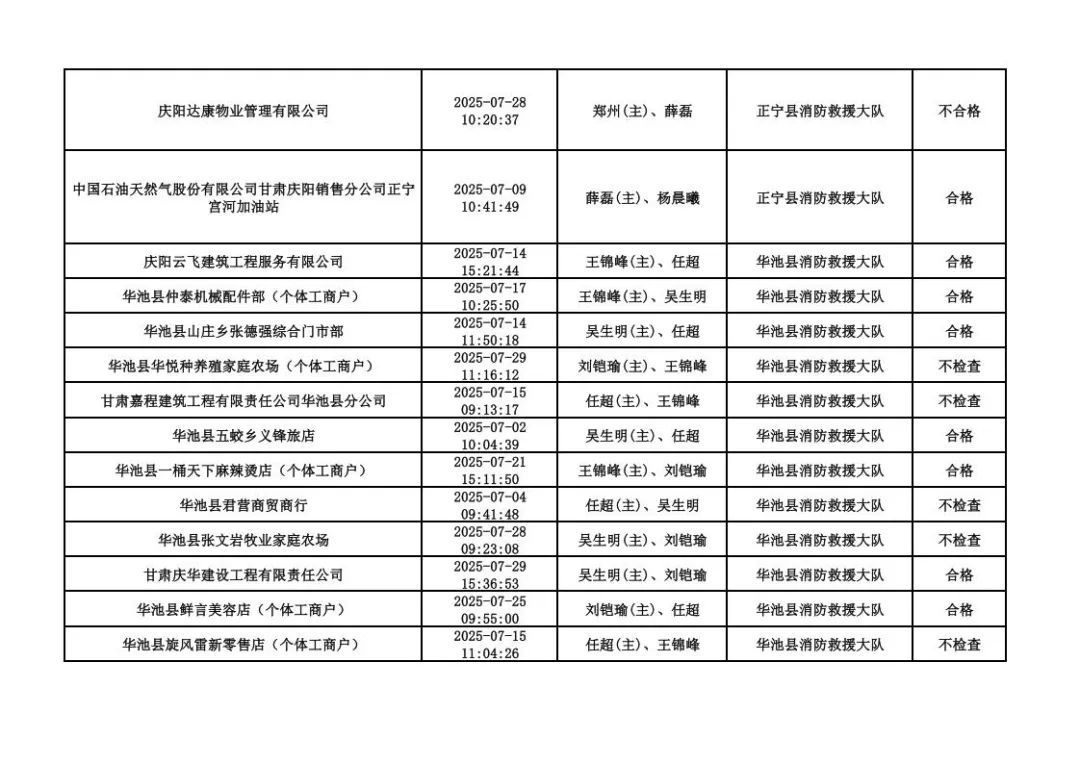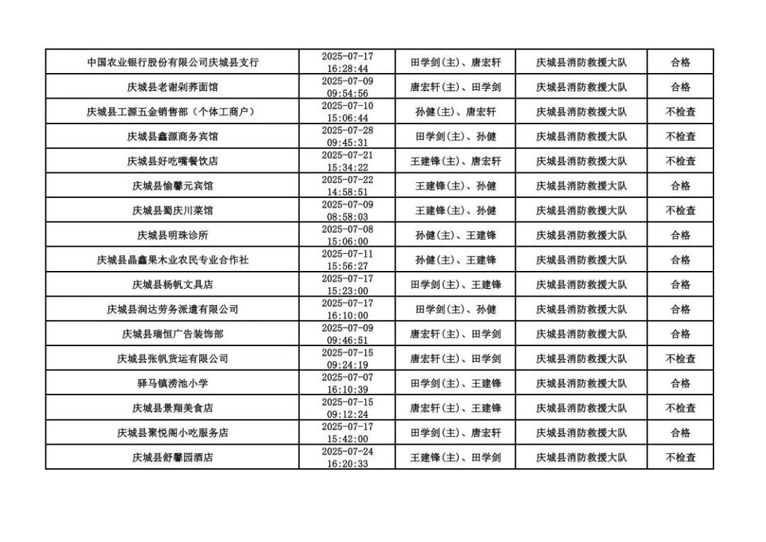 為貫徹落實《消防救援局關(guān)于全面推行“雙隨機(jī)、一公開”消防監(jiān)管工作的通知》(應(yīng)急消〔2019〕241號),認(rèn)真組織實施“雙隨機(jī)、一公開”消防監(jiān)管工作,現(xiàn)將2025年7月份“雙隨機(jī)、一公開”消防監(jiān)督檢查結(jié)果及2025年8月份監(jiān)督抽查計劃公示如下: