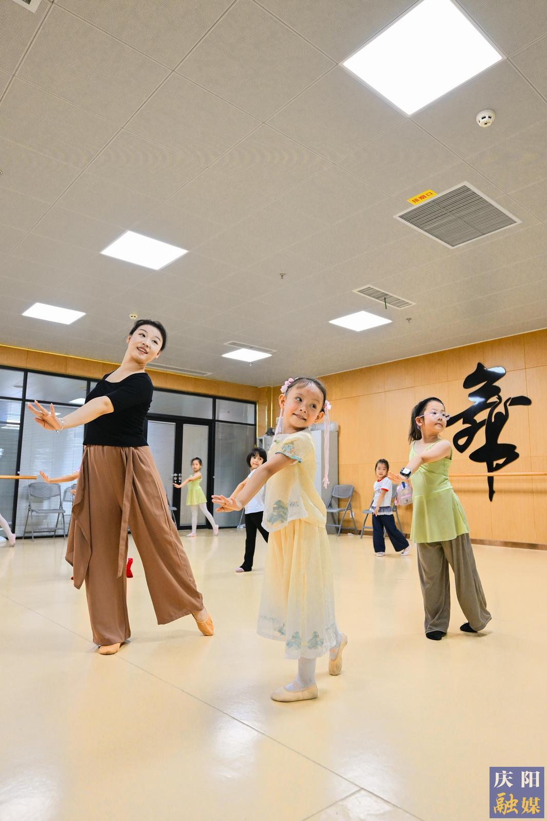 孩子們在慶陽市文化館開設(shè)的“藝潤童心 美育未來”暑假美育公益課上學(xué)習(xí)舞蹈。