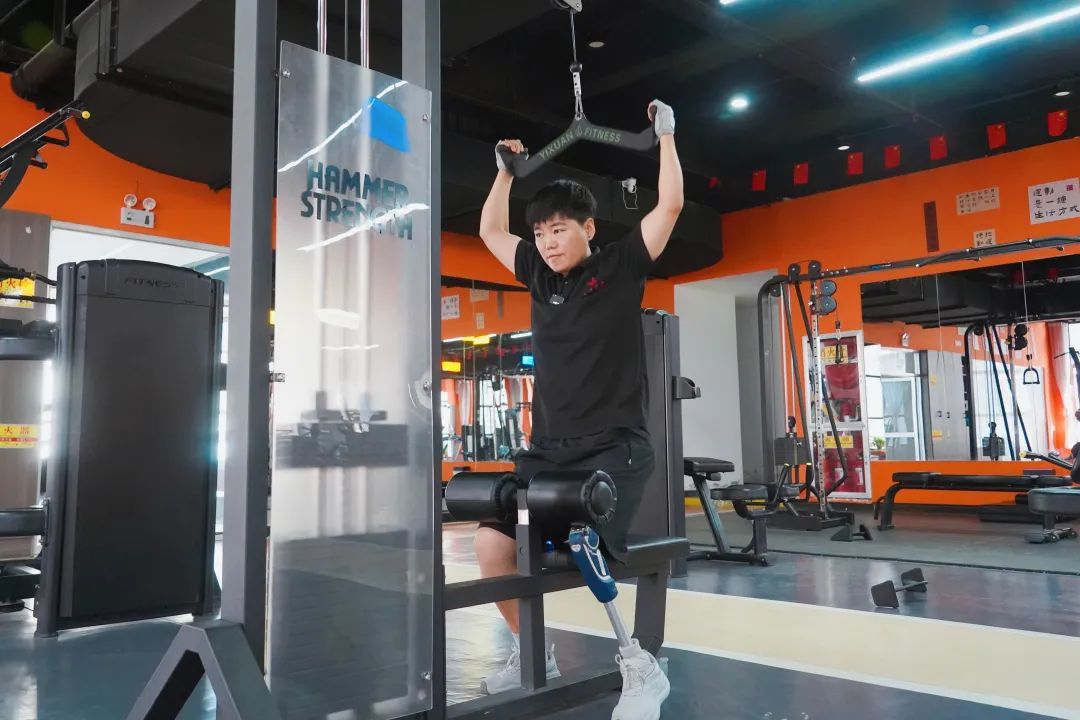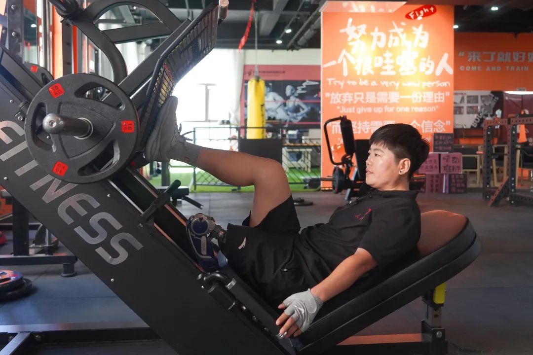 在健身房初見郭艷時,一身黑色著裝,利落的短發(fā),豪爽的走姿……活脫脫一個精干的“小伙”,絲毫看不出姑娘般的柔情。如若不是左腿醒目的假肢,很難將她和殘疾人聯(lián)系在一起!