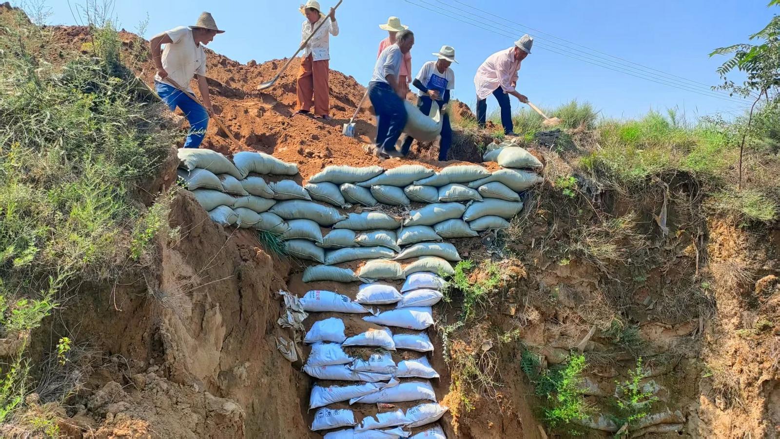 新集鎮(zhèn)群眾對隱患點進行加固。 慶陽融媒記者 白勇濤 攝