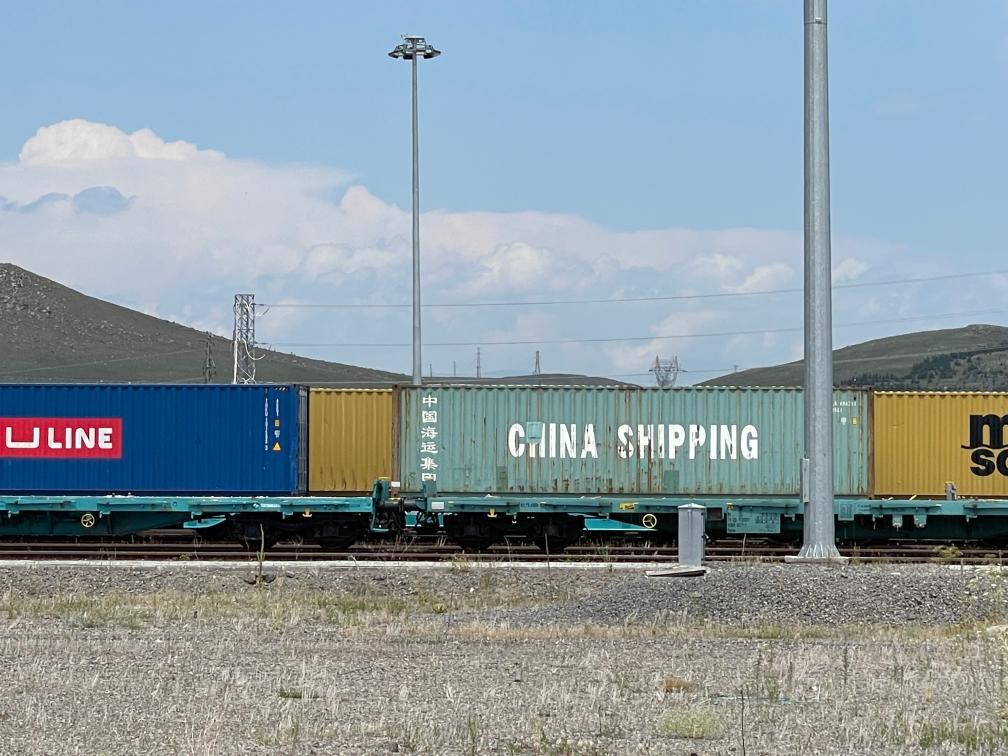 這是2025年7月17日在土耳其東部邊城卡爾斯拍攝的在卡爾斯物流中心經(jīng)停的國際集裝箱貨運(yùn)班列(手機(jī)照片)。新華社記者熊思浩攝