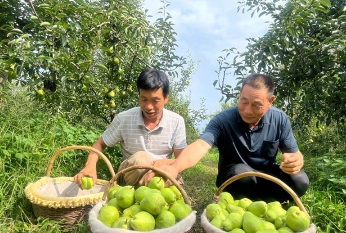 走進(jìn)陳戶村慶陽琦利養(yǎng)殖農(nóng)民專業(yè)合作社的香蕉梨園,成片的梨樹枝繁葉茂,沉甸甸的果實(shí)綴滿枝頭,空氣中彌漫著清甜的梨香。種植戶曹平娃正帶領(lǐng)工人按照“采大留小”的原則進(jìn)行精細(xì)采摘,確保果品優(yōu)質(zhì)優(yōu)價(jià)。