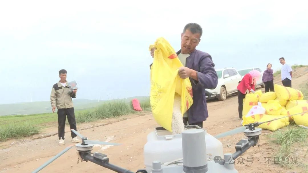 這幾天,在毛井鎮(zhèn)楊東掌村,無人機(jī)種草熱潮也在有條不紊的進(jìn)行。通過無人機(jī)均勻播撒草種與有機(jī)肥,不僅覆蓋了坡地、溝谷等機(jī)械作業(yè)難以抵達(dá)的區(qū)域,還通過衛(wèi)星定位實(shí)現(xiàn)了播種密度的精準(zhǔn)控制。"此次主要在平緩的地帶進(jìn)行機(jī)械條播作業(yè),在陡坡地帶進(jìn)行人工坑穴作業(yè),后期通過無人機(jī)撒播施肥。"環(huán)縣毛井鎮(zhèn)2025年草原“雙種”項(xiàng)目技術(shù)指導(dǎo)員韓龍龍介紹,目前毛井總?cè)蝿?wù)量6347畝,已經(jīng)完99%,預(yù)計(jì)本月中旬完成所有種草任務(wù)。