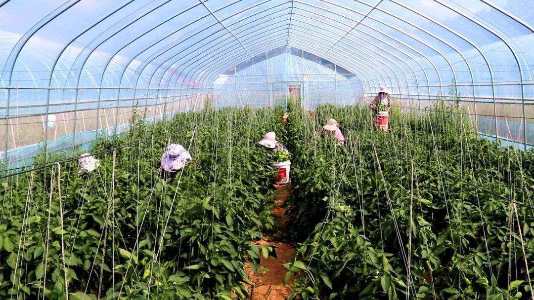 村民正在采摘頭茬辣椒(毛娜娜 攝)