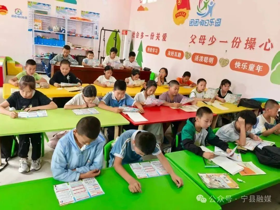 今年,寧縣新莊鎮(zhèn)丁任村“兩委”聯(lián)合駐村工作隊和返鄉(xiāng)大學(xué)生志愿者,依托村上農(nóng)家書屋,巧妙融合“團(tuán)團(tuán)假日樂園”暑期托管服務(wù),精心打造集閱讀成長與安心看護(hù)于一體的學(xué)生“暑期樂園”,農(nóng)家書屋搖身一變,成為孩子們的“清涼充電站”,也成為家長們放心的“托管中心”。