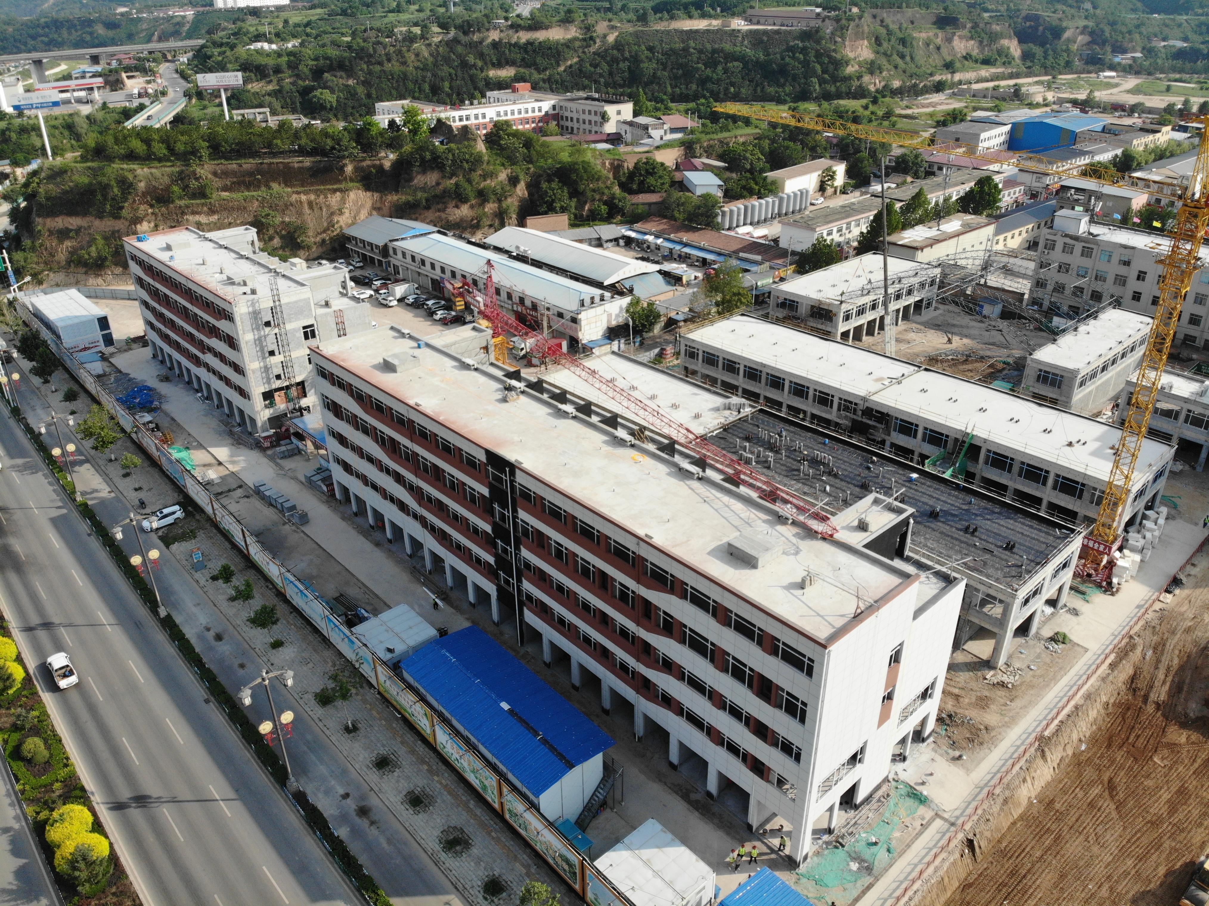 “項目自去年7月份開工以來,一期工程的所有的主體和二次結(jié)構(gòu)已經(jīng)順利完成,目前項目正在進(jìn)行的是外墻保溫和真石漆工作,所有的窗框已經(jīng)安裝完成,接下來進(jìn)行安裝門和窗戶,預(yù)計10月中旬投入使用。”慶城縣中商農(nóng)博城項目工程負(fù)責(zé)人李坤告訴記者。