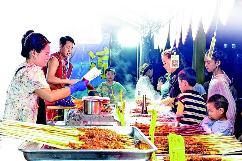 “烤腸3元一根,今天賣了200多根!”黃岔村村民田淑娟在賽場邊支起小攤,笑容滿面,像她這樣的臨時攤主,賽事期間增加了上百個。平泉羊湯、改刀肉、御膳糖餅等特色美食沿街排開,構(gòu)成一條“舌尖上的鄉(xiāng)村振興長廊”。