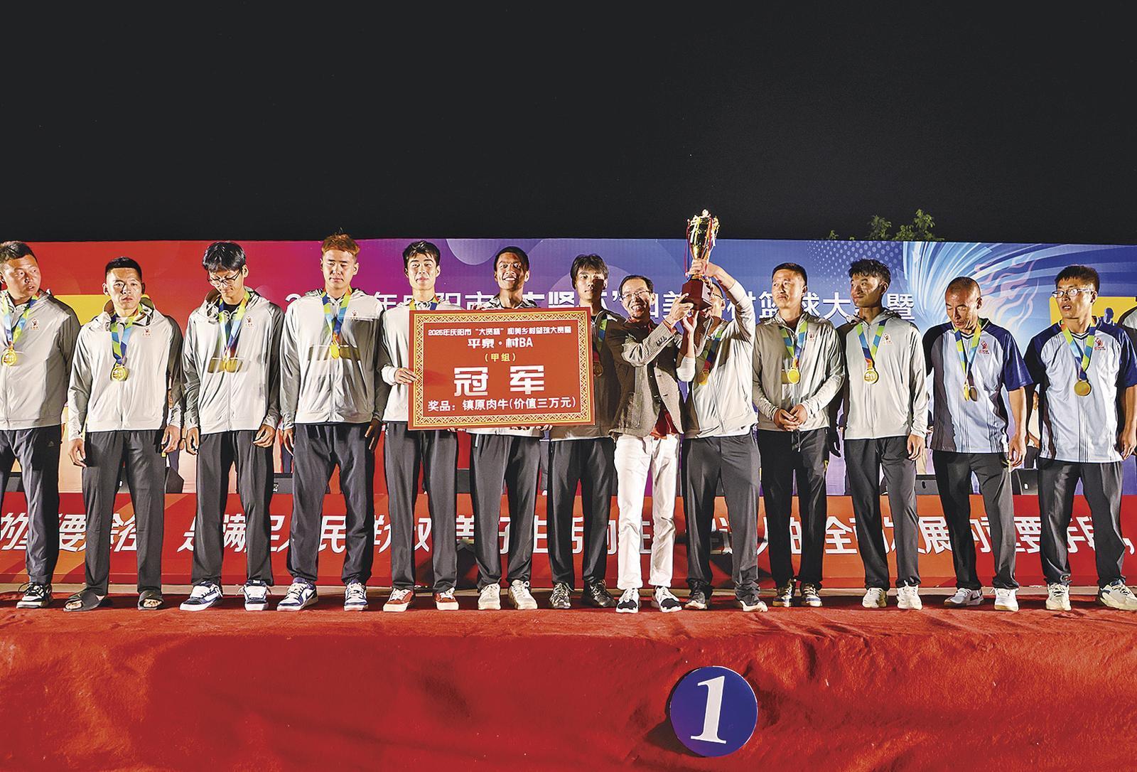 8月12日晚,鎮(zhèn)原縣平泉鎮(zhèn),隨著終場哨聲響起,慶陽商賢聯(lián)誼會隊以109:96戰(zhàn)勝新城鎮(zhèn)閆寨安家胡同隊,捧起2025年慶陽市“大賢杯”和美鄉(xiāng)村籃球大賽暨平泉·村BA男子乙組冠軍獎杯。與此同時,孟壩鎮(zhèn)星火隊也在男子甲組決賽中力克屯字鎮(zhèn)紅色先鋒隊,成為賽事贏家。