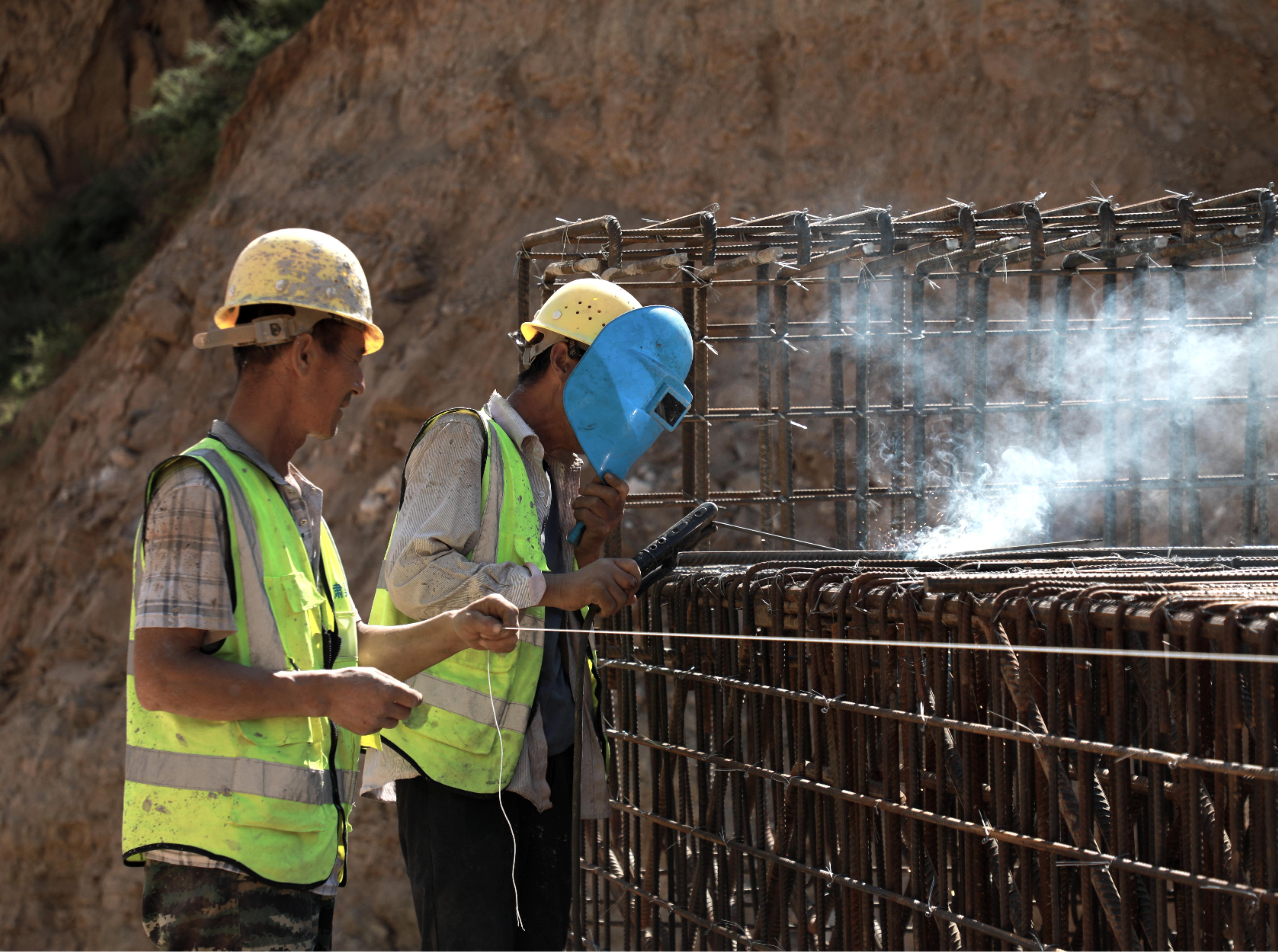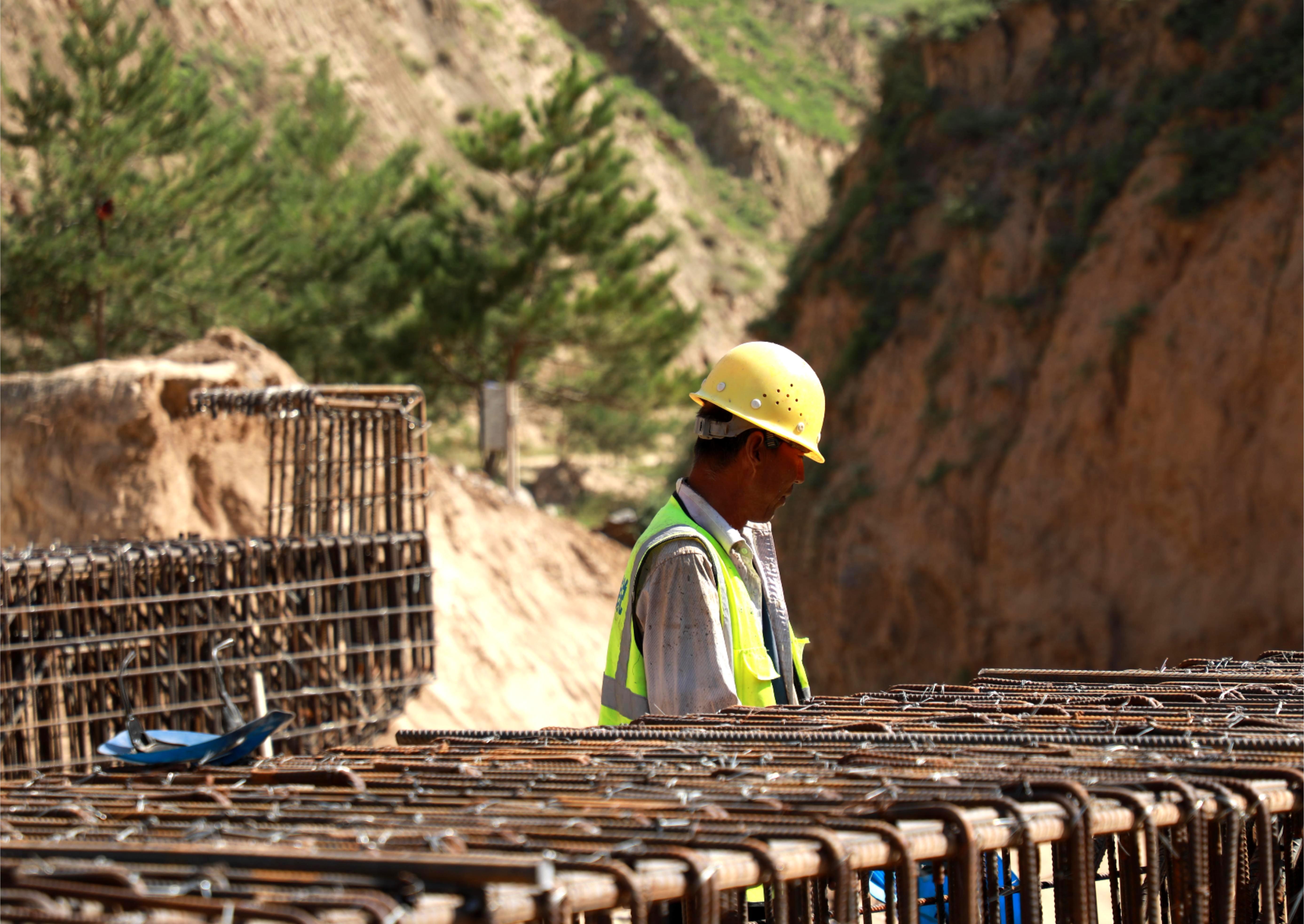 在橋梁施工區(qū),電焊的藍(lán)色弧光不時閃爍。十余名工人正熟練地綁扎蓋梁鋼筋,汗水順著臉頰滑落也顧不上擦拭。解平平手持圖紙,正在核對鋼筋間距?!斑@座橋長35.04米,是整條路的控制性工程,目前橋墩施工已完成,即將進(jìn)行模板支護(hù)和混凝土澆筑作業(yè),包括承臺與橋板等關(guān)鍵結(jié)構(gòu)?!彼穆曇魩缀醣慌赃吇炷翑嚢铏C(jī)的轟鳴淹沒。
