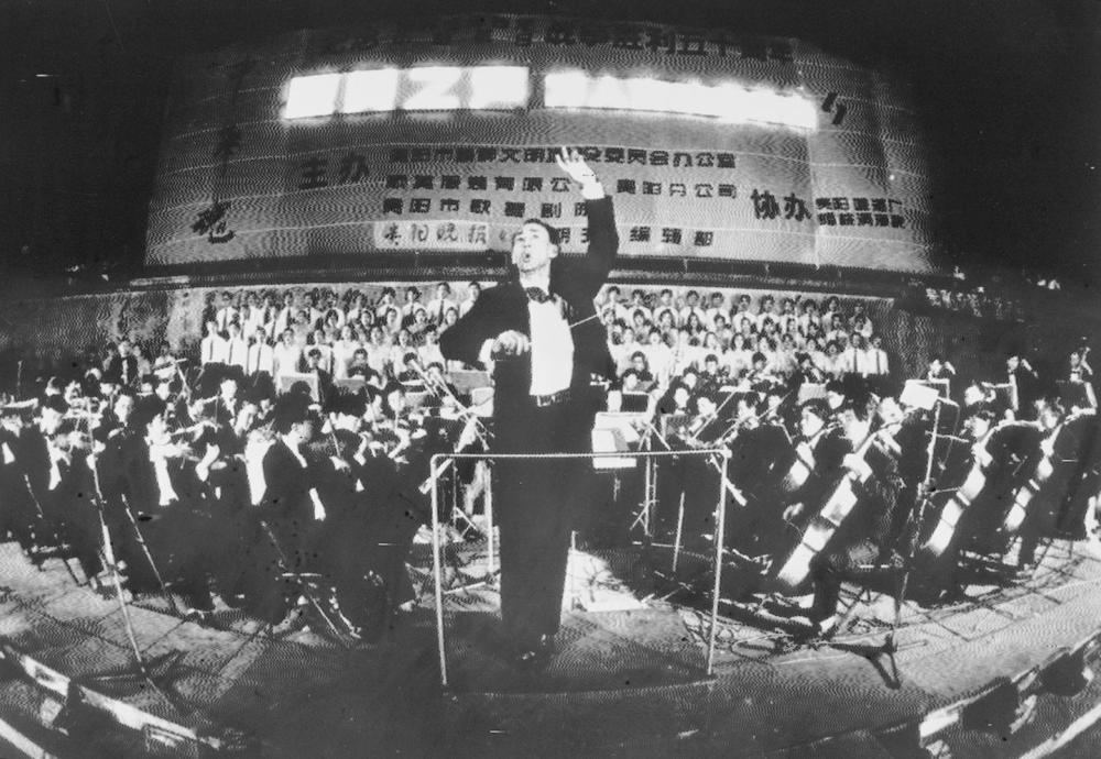 1995年,56所首都高校的1萬名大學(xué)生在北京首都體育館參加紀(jì)念中國人民抗日戰(zhàn)爭勝利50周年首都大學(xué)生《黃河大合唱》萬人演唱會。